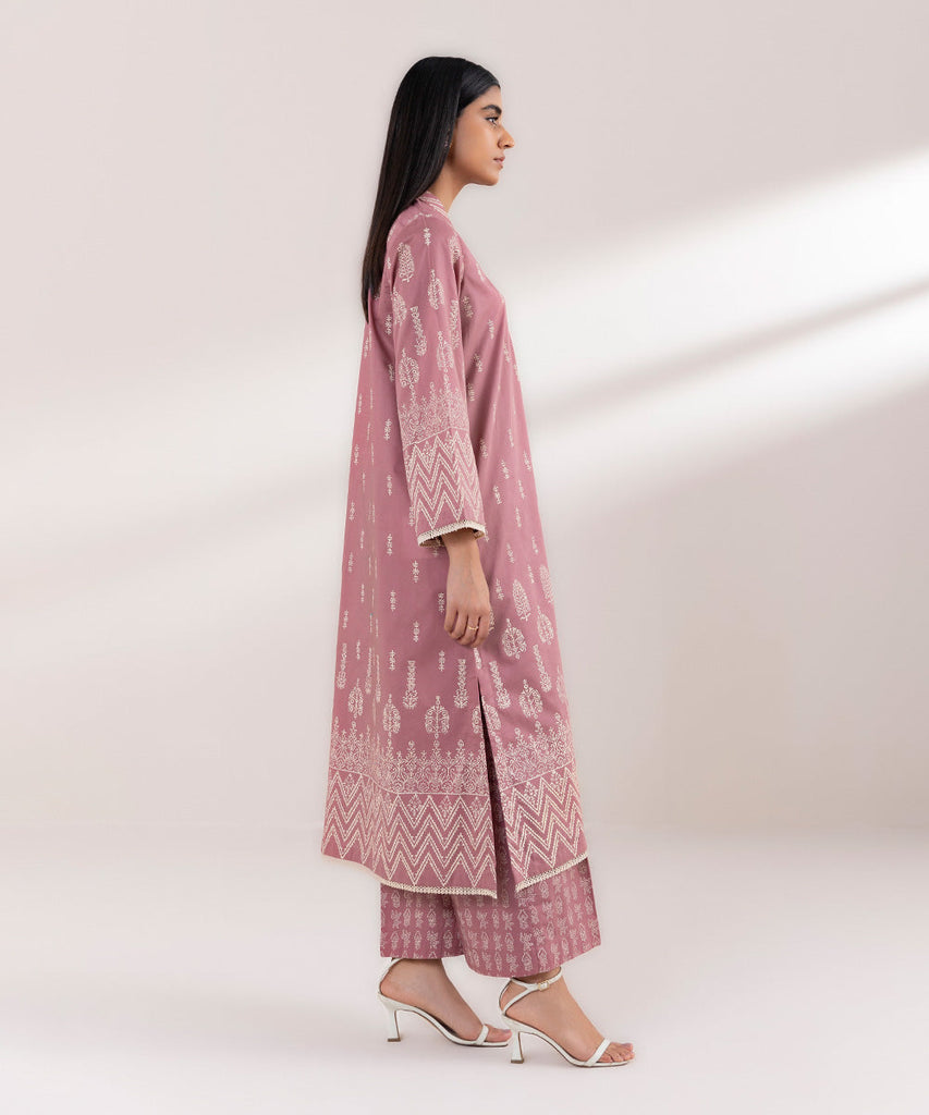 Flaunt your festive style with our mauve pink block printed A-line shirt featuring a Y-neckline.