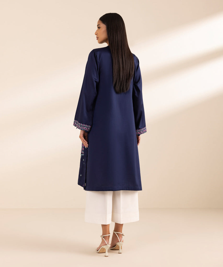 Straight KurtaCurate the perfect festive look with our navy blue embroidered shirt featuring a round neckline with sl...