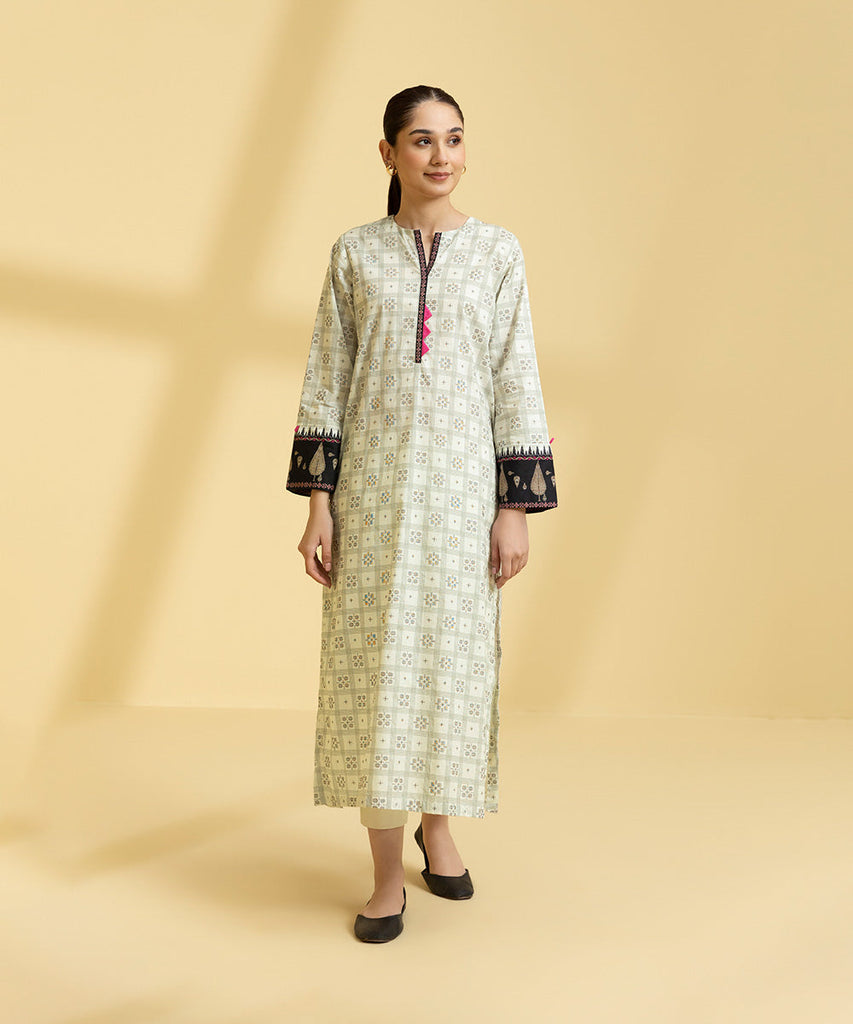 Printed Front, Printed back, Full Sleeves, Round Neck with slit
