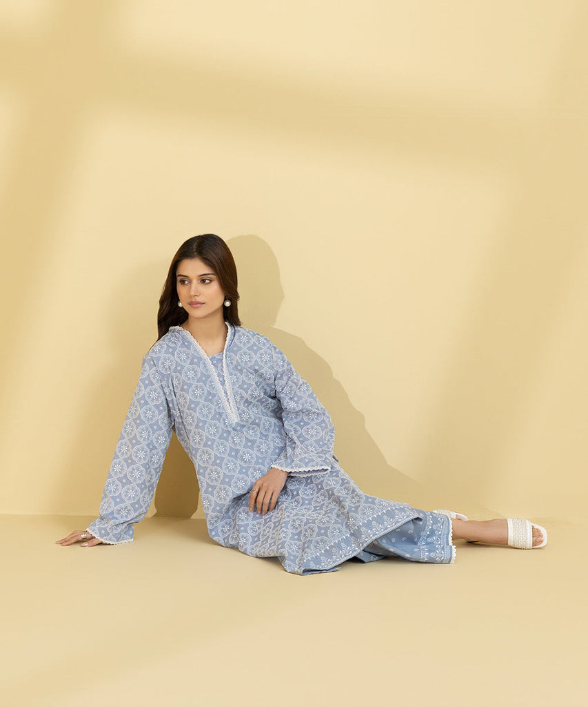 A line Shirt For a refreshing look adorn this blue A-line silhouette featuring a Y-neckline.