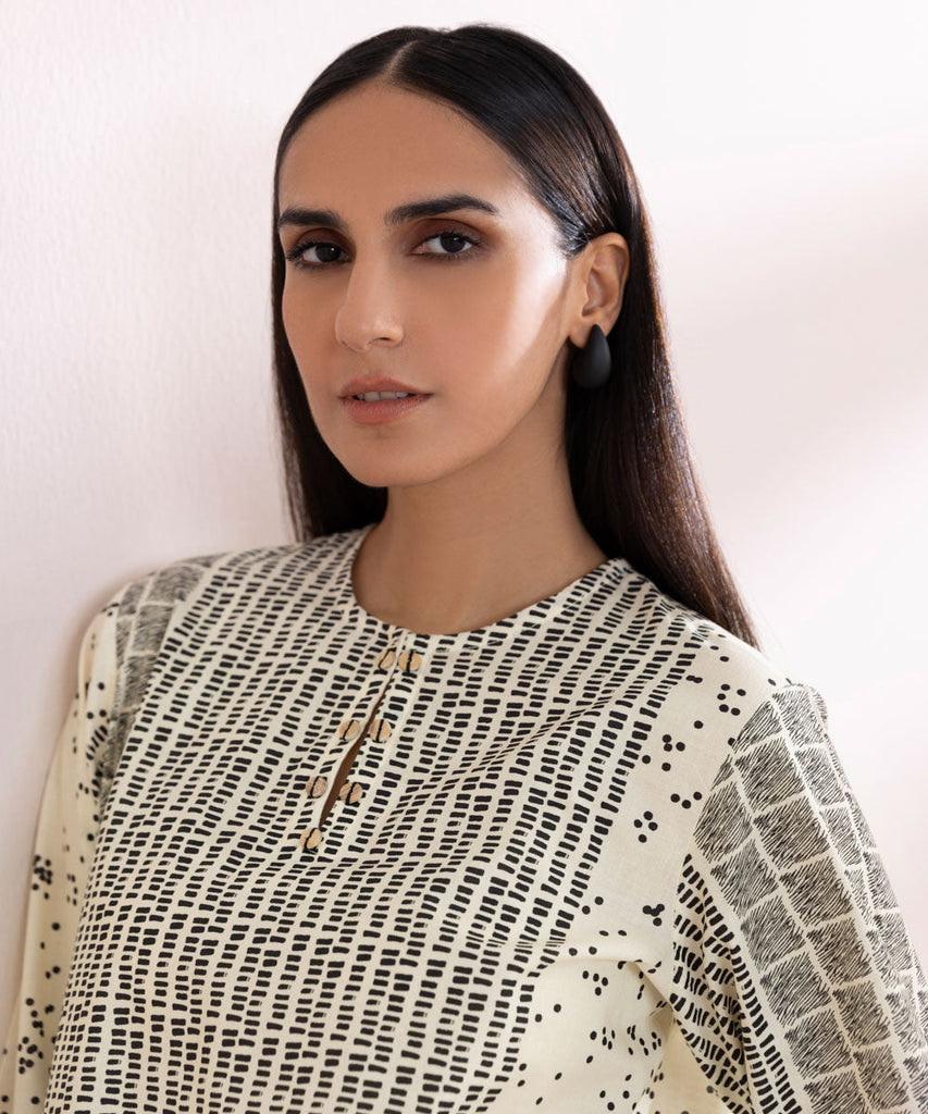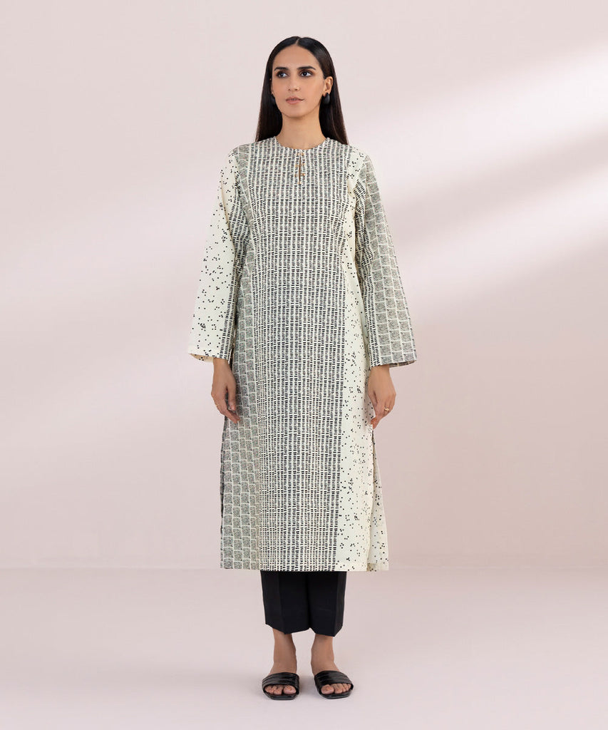 Printed Front, Printed Back, Full Sleeves, Round Neckline with a slit