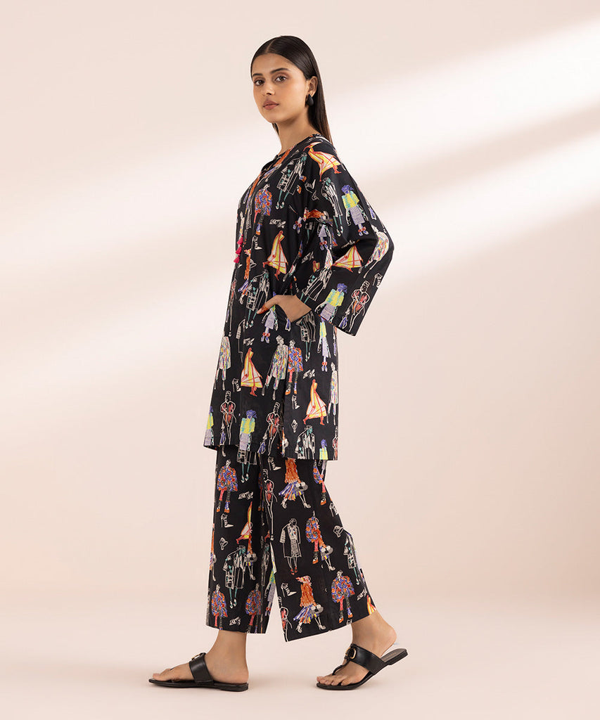 Boxy ShirtCurate a playful summer look with our printed black, textured lawn shirt in a boxy silhouette. Details: Pri...