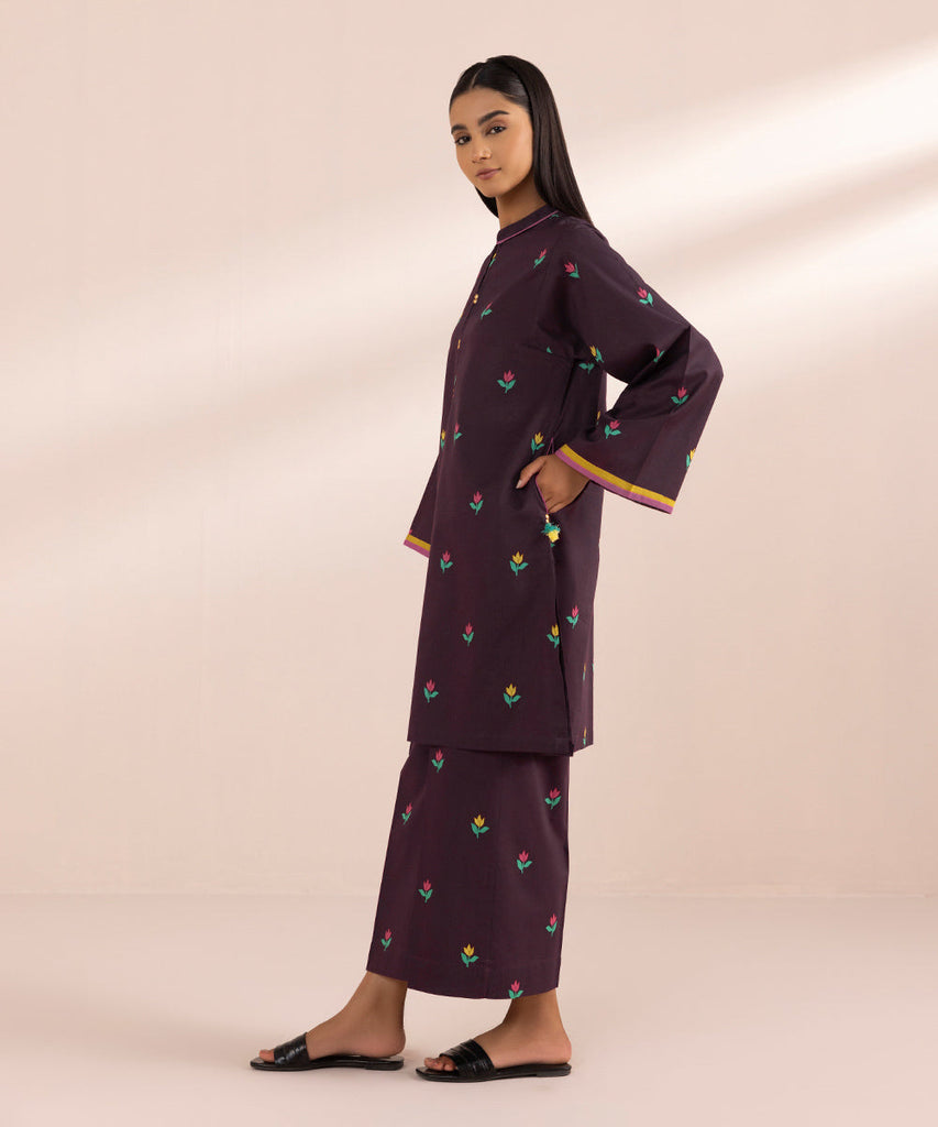 A-Line ShirtKeep it elegant this summer with our printed dark purple, long A-line shirt in textured lawn. Details: Pr...