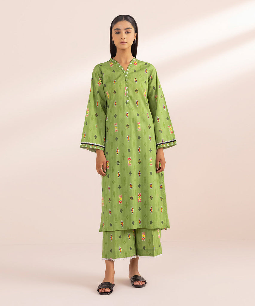 Straight KurtaKeep it easy breezy this summer with our pear green, long straight shirt in printed lawn. Details: Prin...