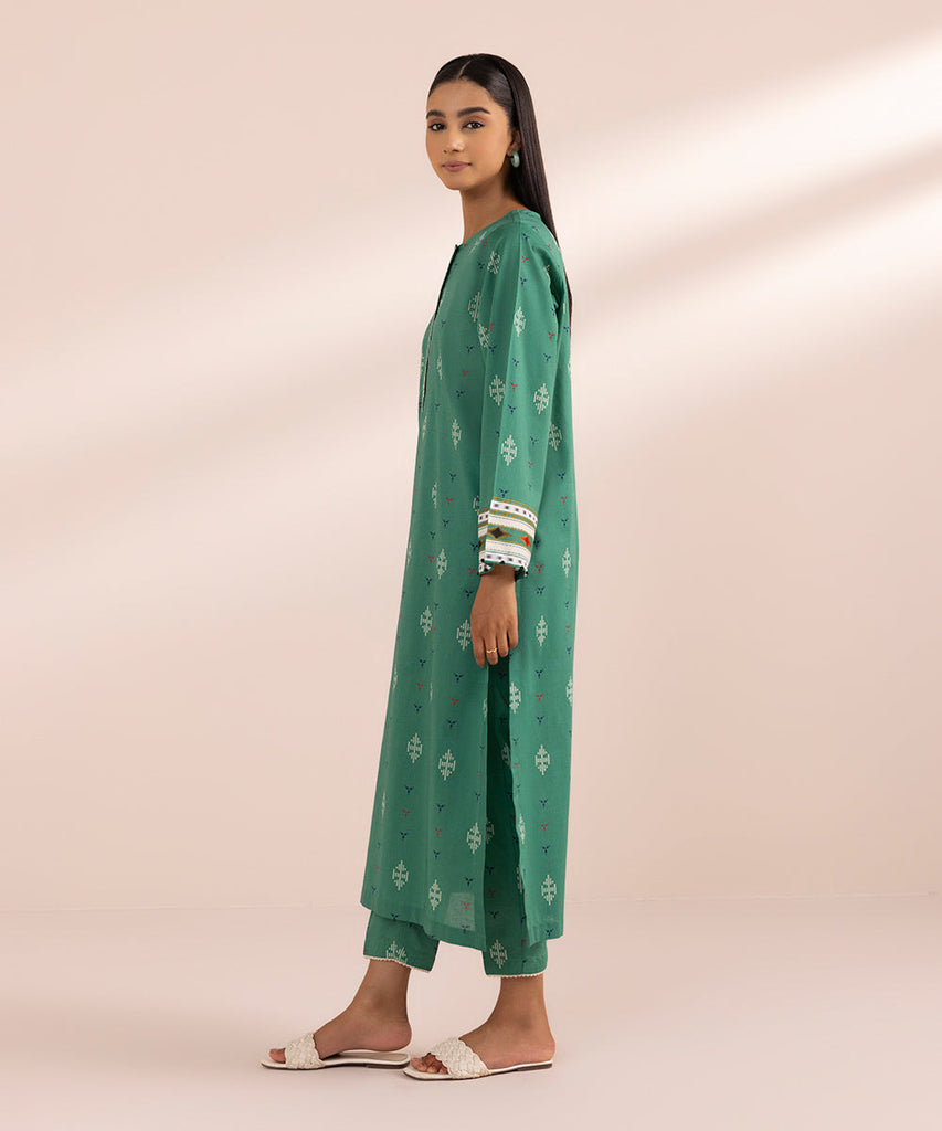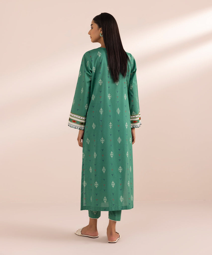 Straight KurtaKeep it easy breezy this summer with our jade green, long straight shirt in printed lawn. Details: Prin...