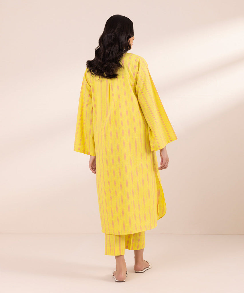 Curate the perfect summer fit with our yellow dyed straight shirt featuring a band neckline with placket.