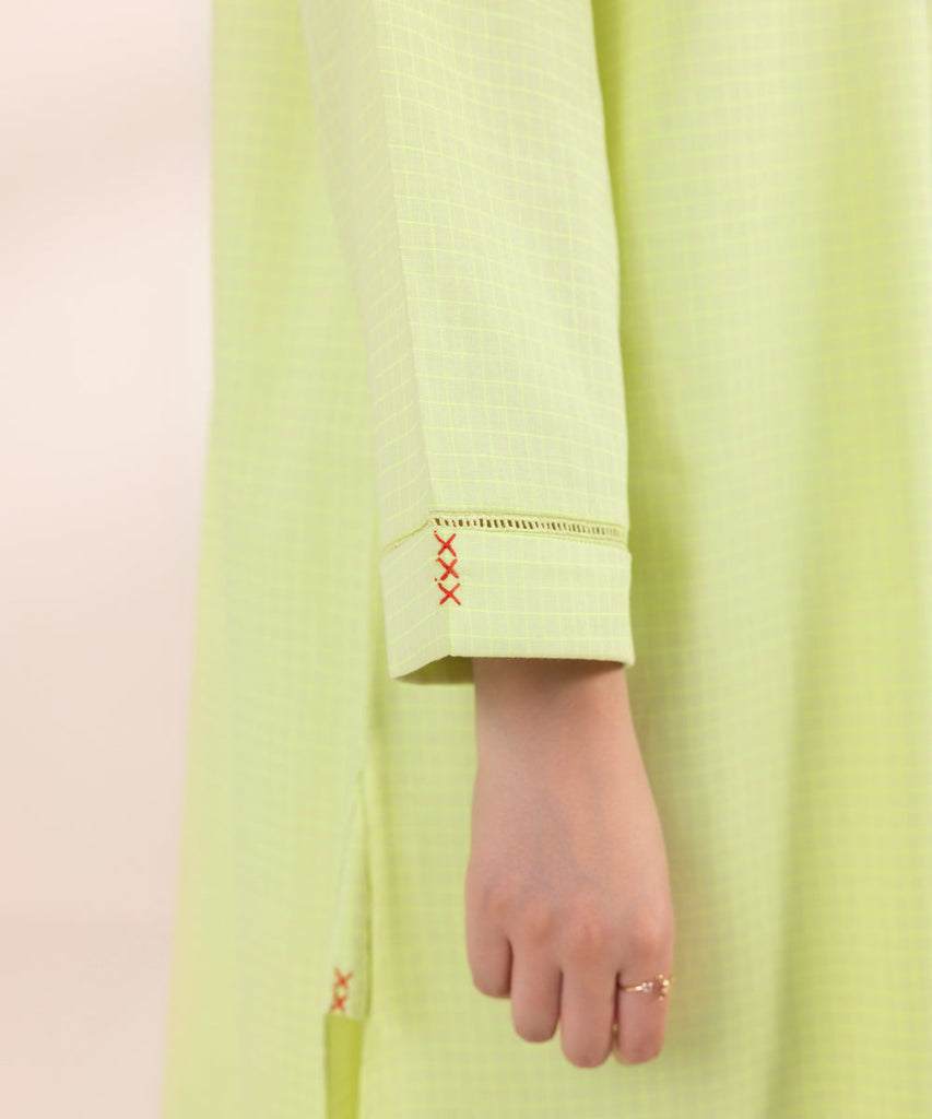 A-Line ShirtComplete your festive style with our lime green A-line flared shirt featuring a round neckline with plack...
