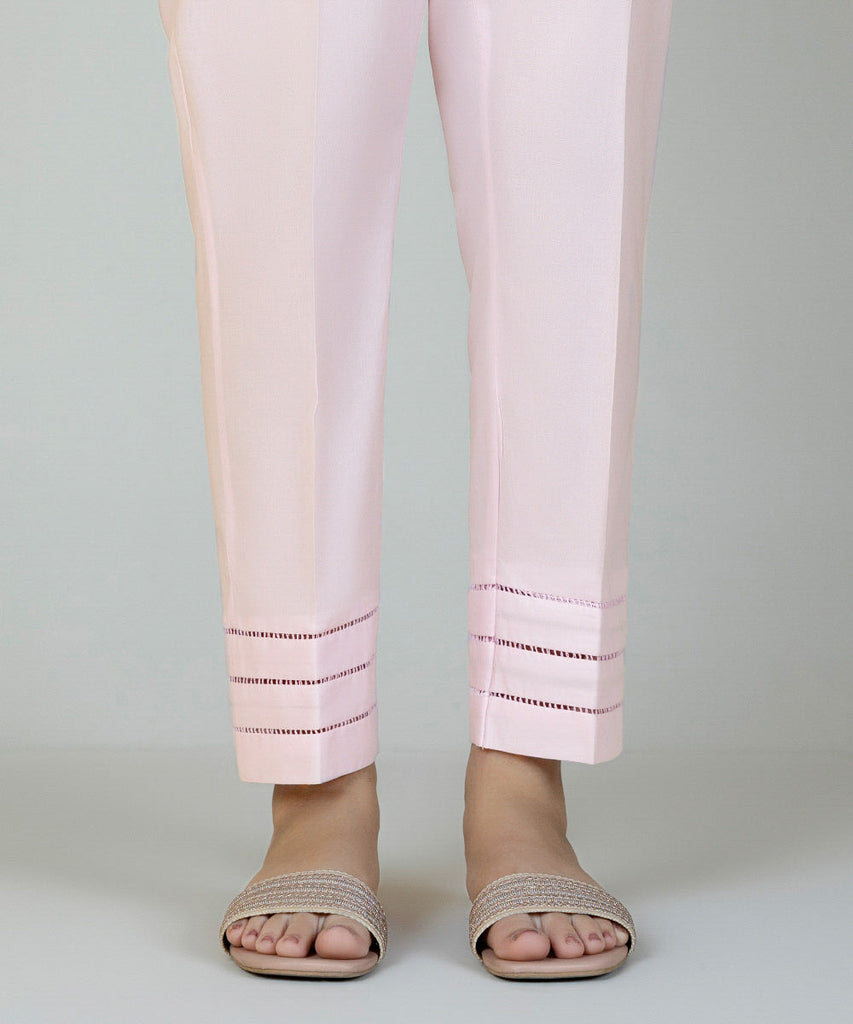 Complete your Eid look in our soft pink cambric cigarette pants.