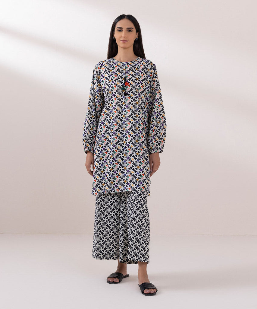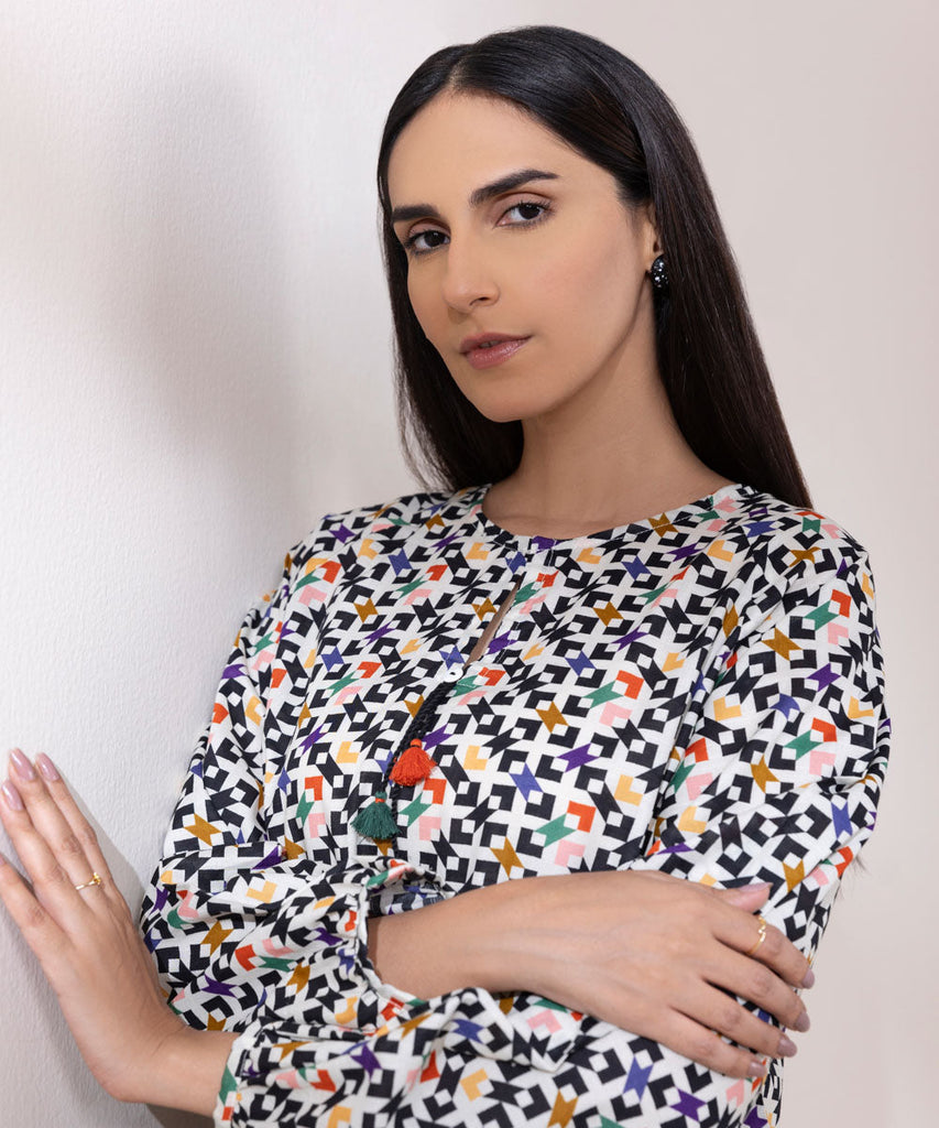 A-Line ShirtCreate an easy breezy look this Eid in our printed multi-coloured, textured lawn A-line shirt with tassel...