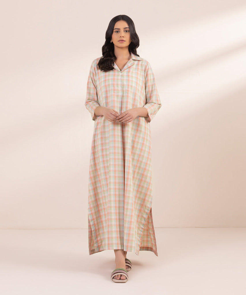 A-Line ShirtElevate your festive style with our pink full-length A-line shirt featuring a collared neckline.