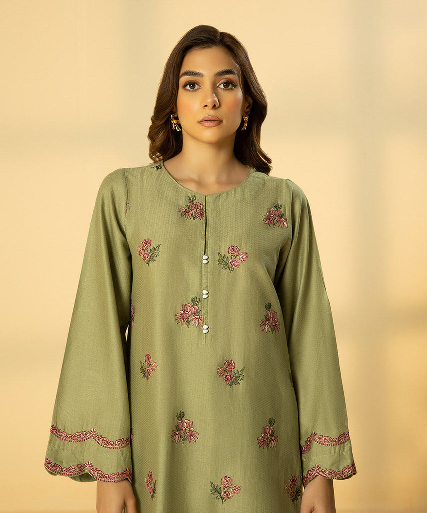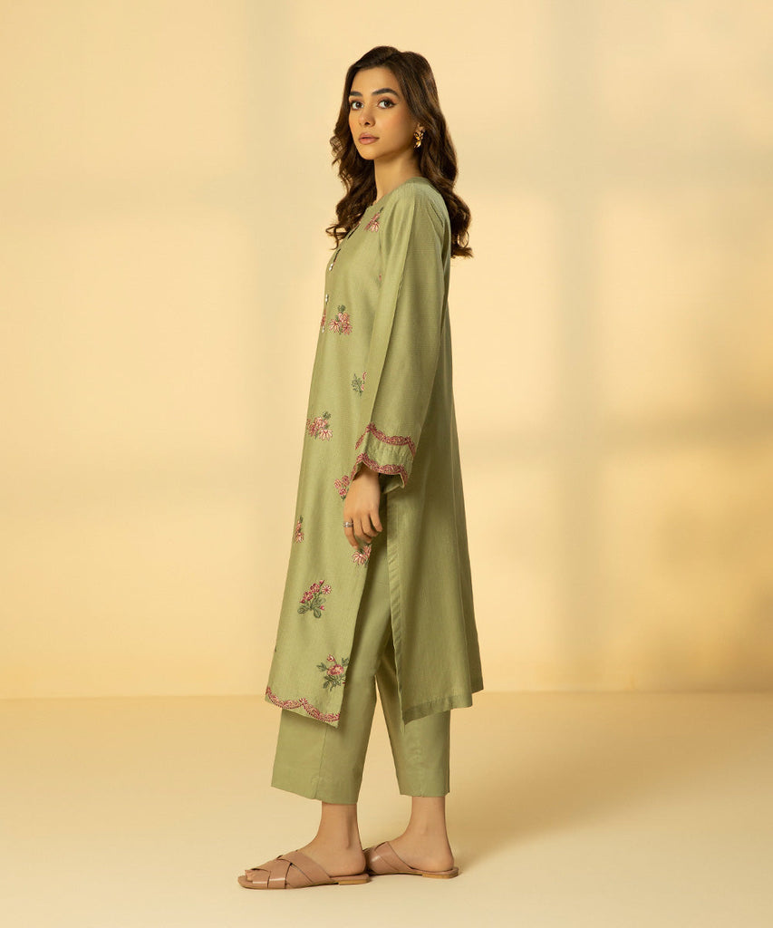 2 Piece - Embroidered Cotton Suit
