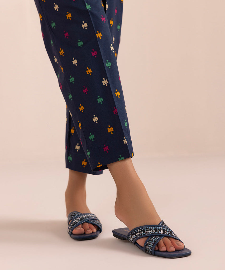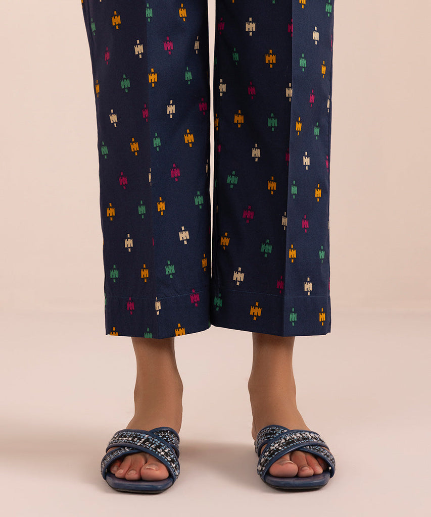 Complete your look with our printed space blue cambric straight pants. Straight PantsColour: Space BlueFabric: Cambri...