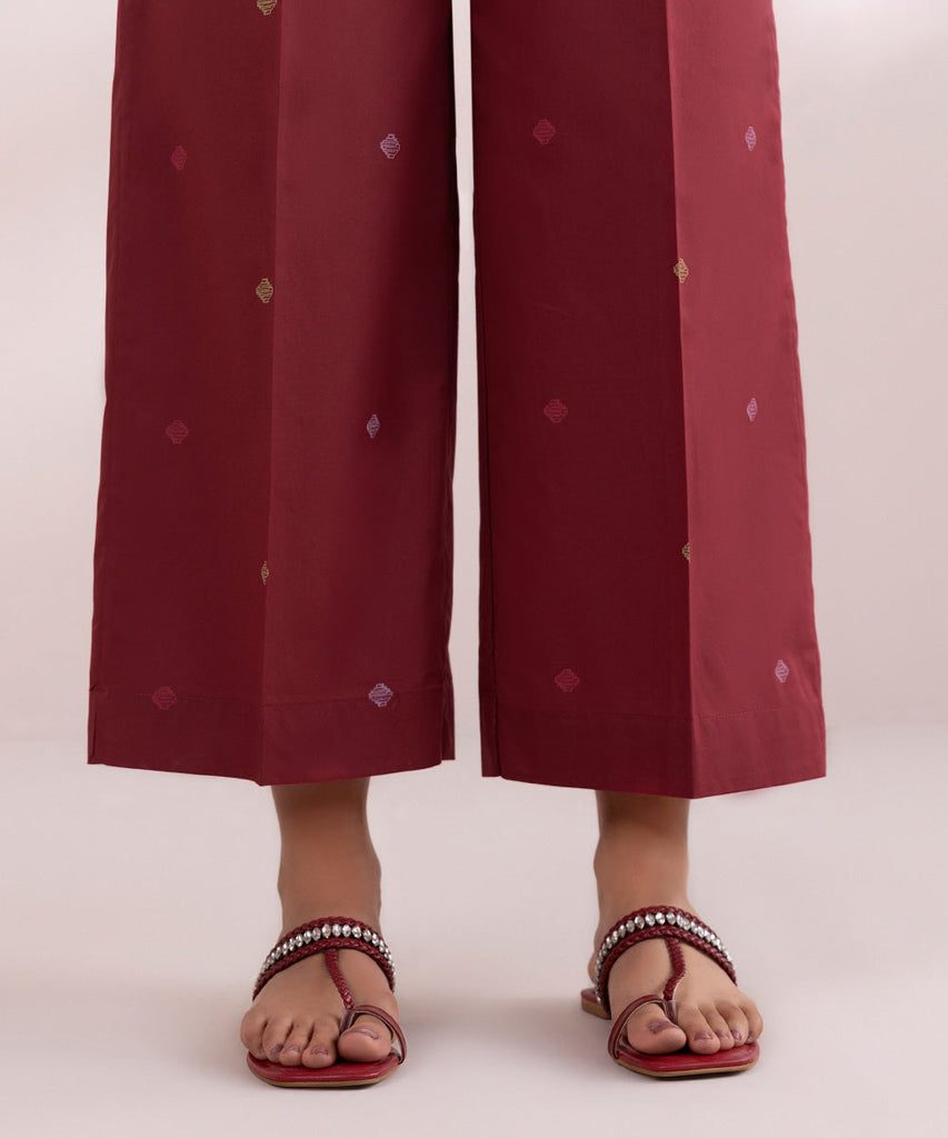 Complete your look with our maroon printed cambric culottes.