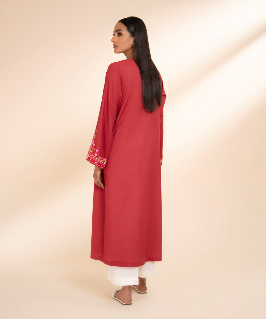Straight KurtaEmbody regal style this Eid in our red, long straight, lawn shirt accentuated with embroidery.