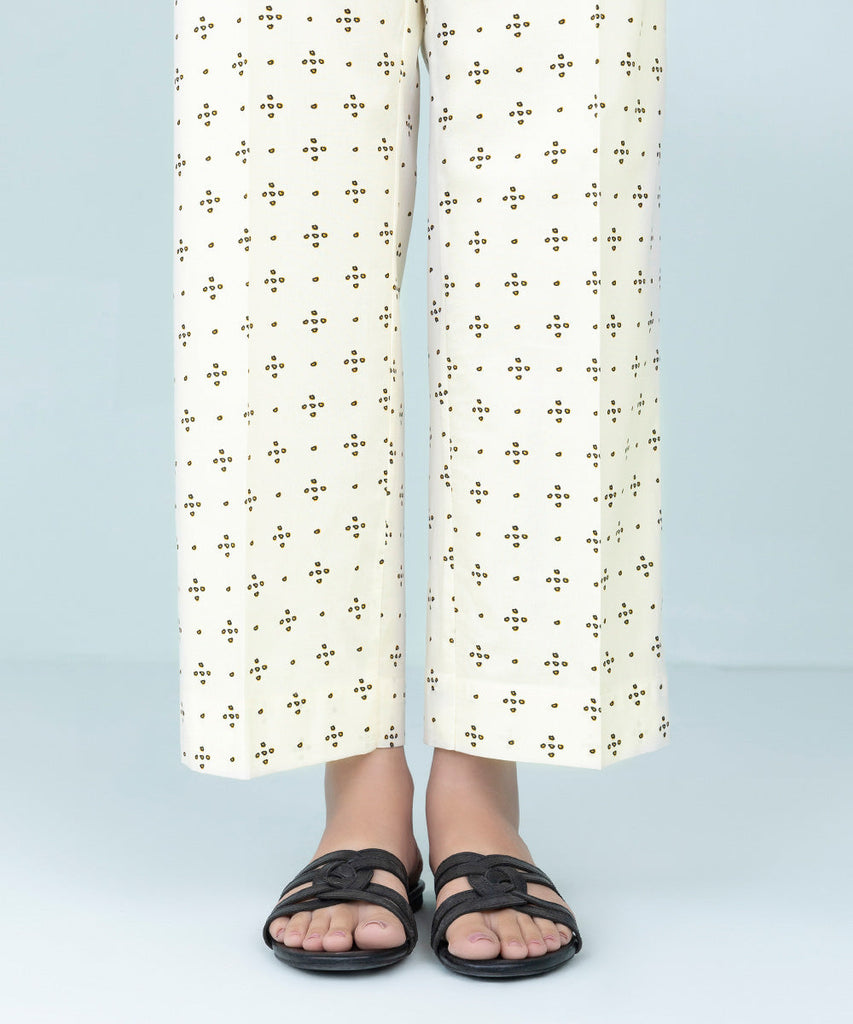 Complete your outfit with our cream-white printed straight cambric pants. Straight PantsColour: Cream WhiteFabric: Ca...