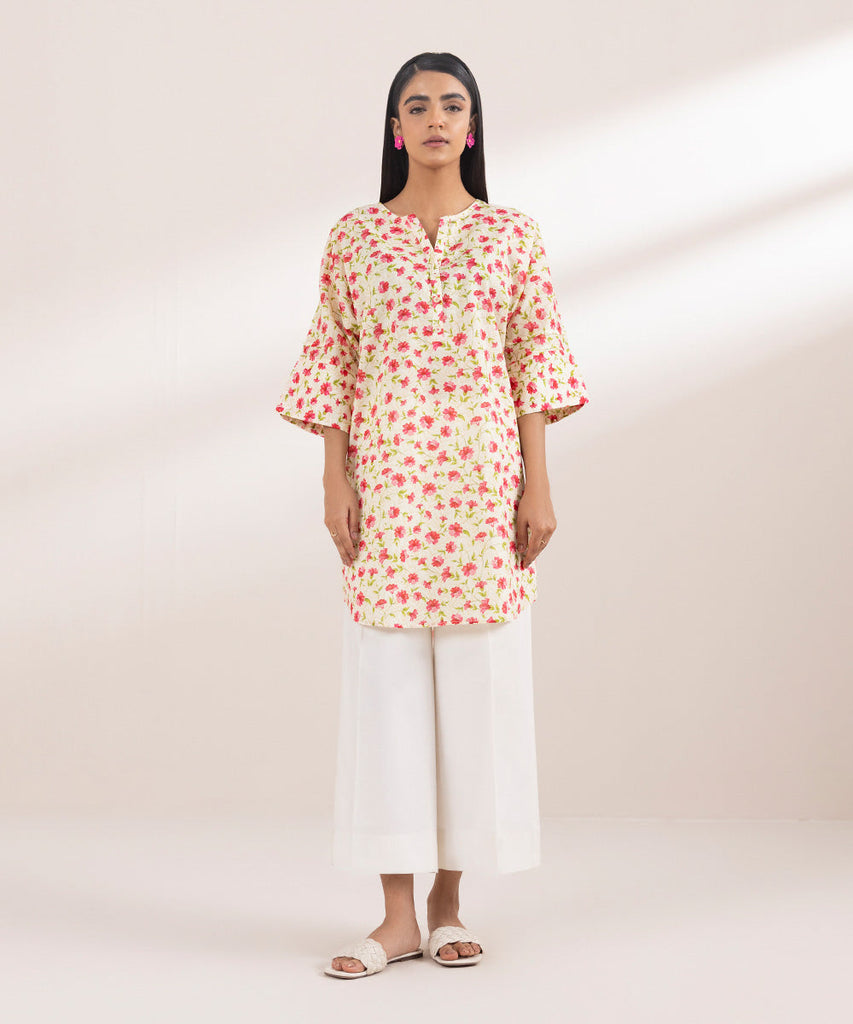 Printed Front, Printed Back, Full Sleeves, Round Neckline with a slit
