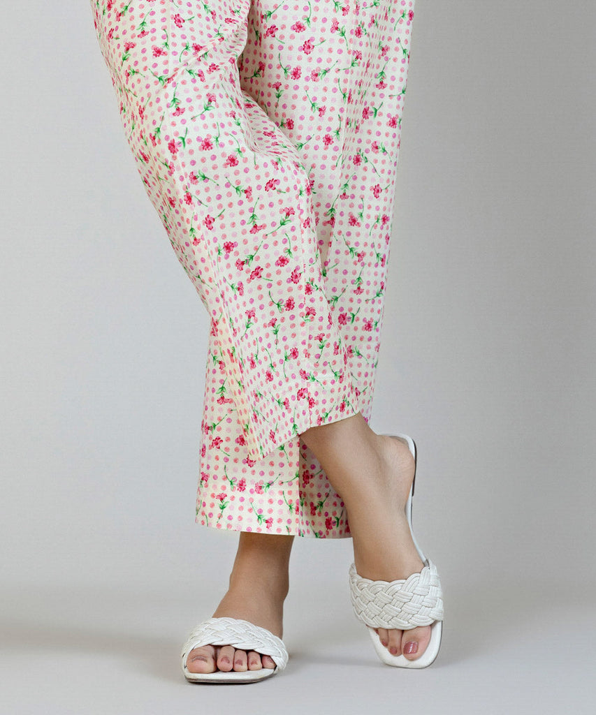 Complete your Eid look in our pink and off-white, printed cambric straight pants.