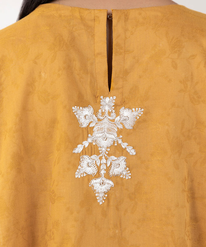 A-Line ShirtFor a chic festive look style our mustard, long A-line cotton jacquard shirt featuring embroidery. Detail...