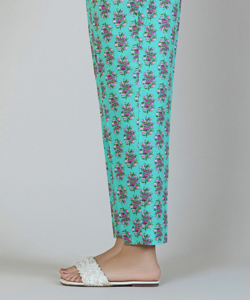 Complete your Eid look in our deep turquoise printed cambric cigarette pants.