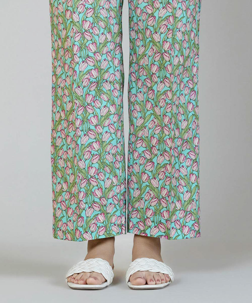 Complete your Eid look in our blue printed cambric straight pants.