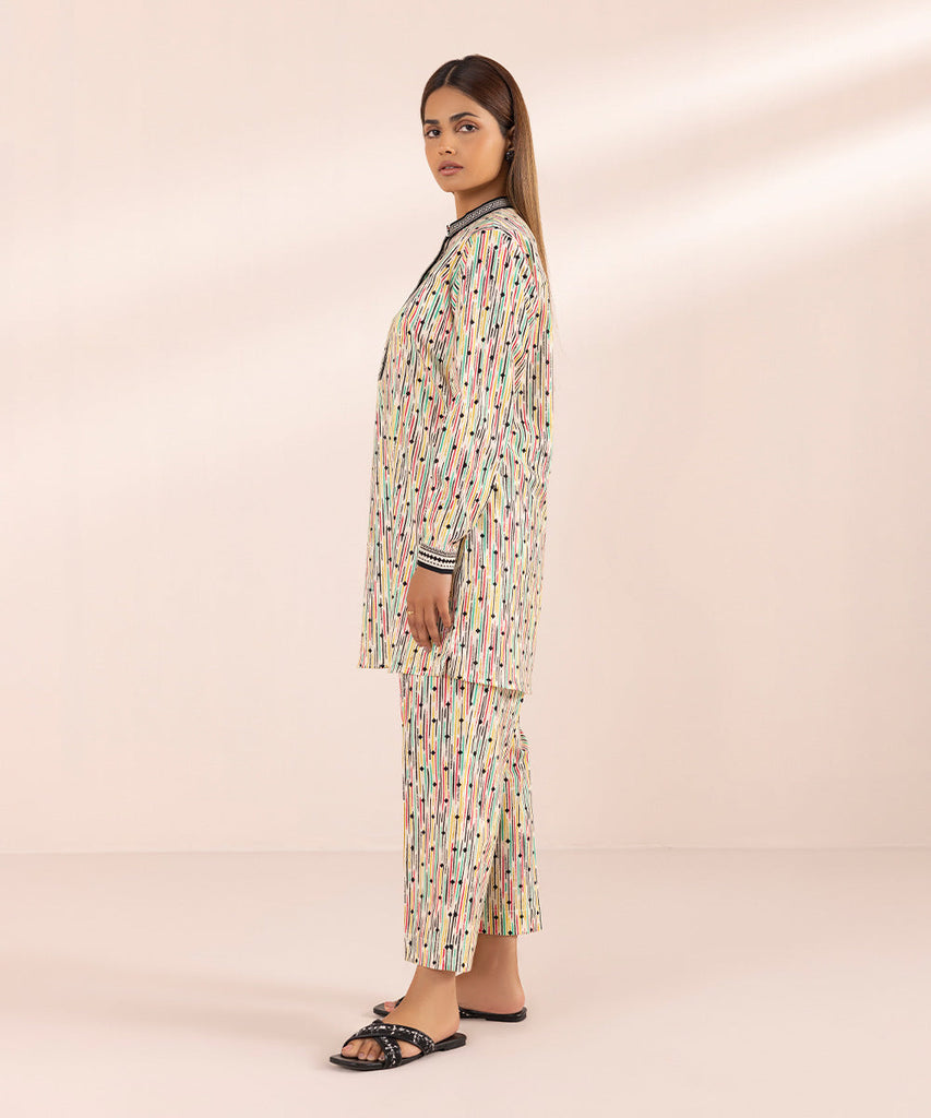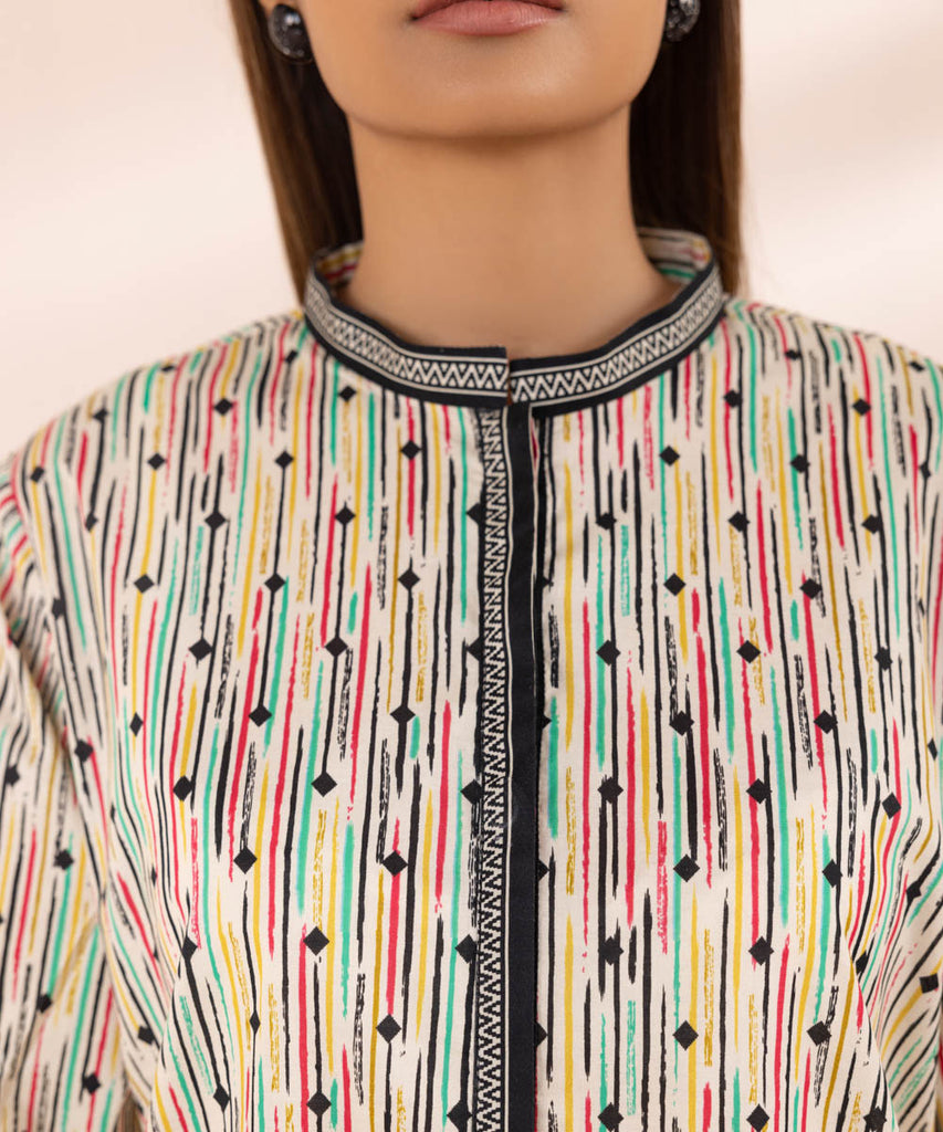 Printed Front, Printed Back, Full Sleeves, Band Neckline with placket