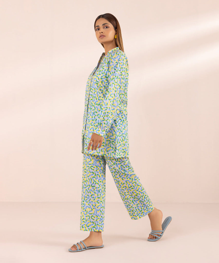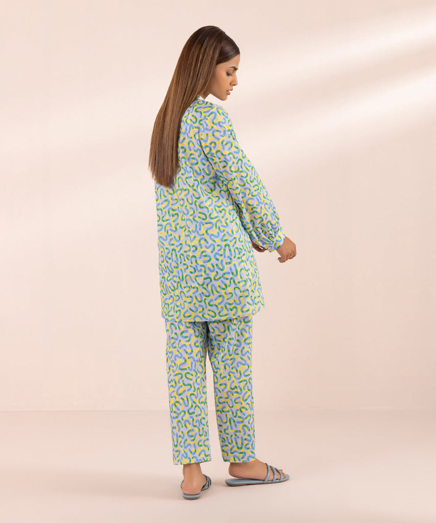 Printed Front, Printed Back, Full Sleeves, Band Neckline with placket