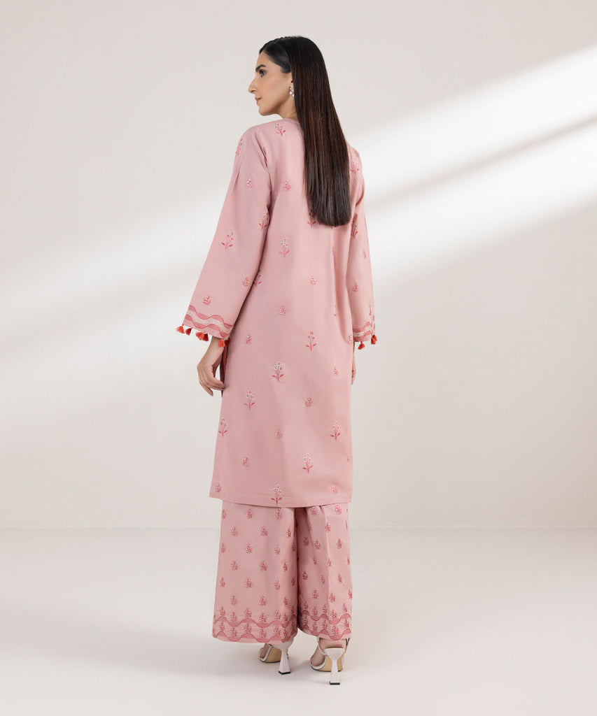 Channel understated allure this Eid in our tea pink, straight poplin shirt accentuated with embroidery.