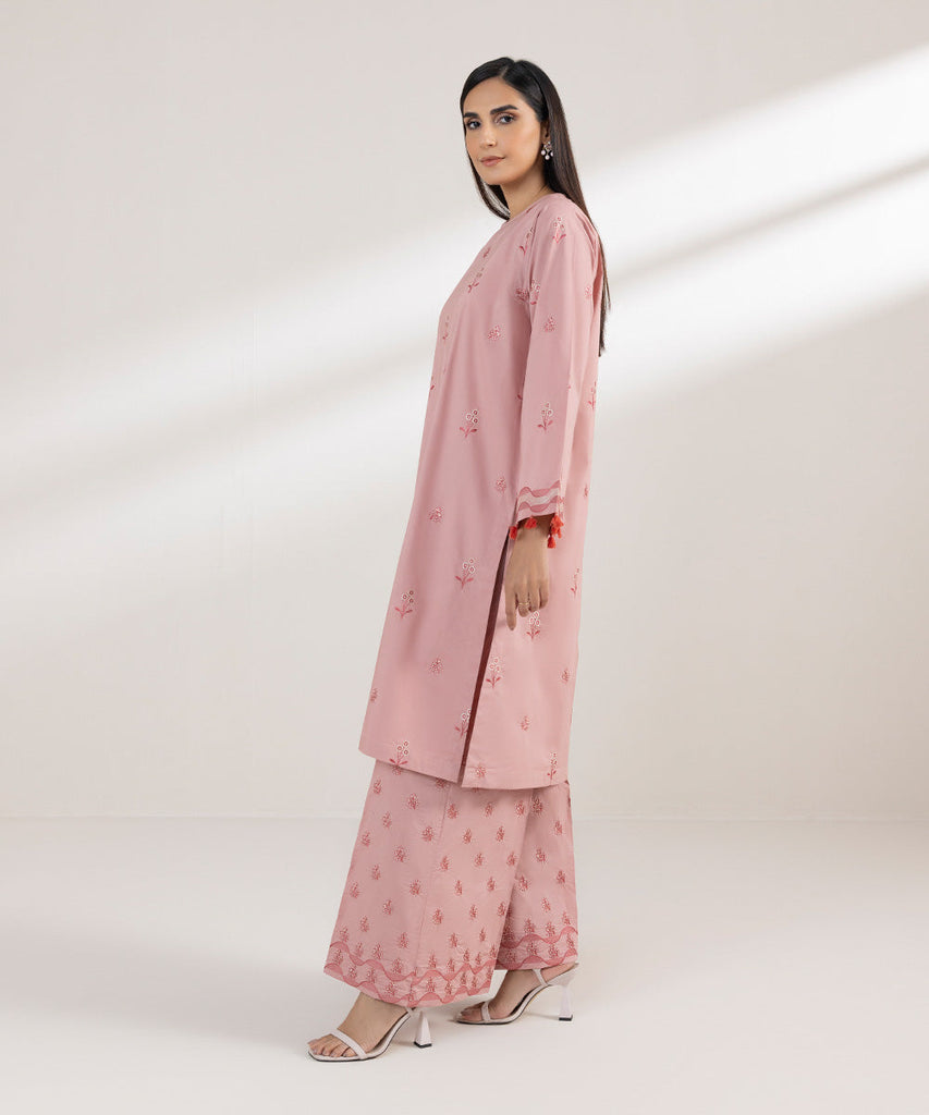 Straight KurtaChannel understated allure this Eid in our tea pink, straight poplin shirt accentuated with embroidery....