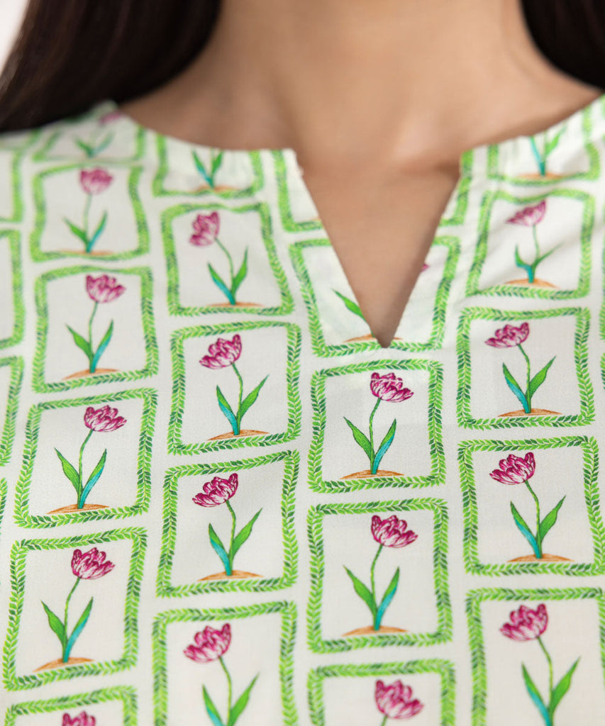 Printed Front, Printed Back, Full Sleeves, Round Neckline with a slit