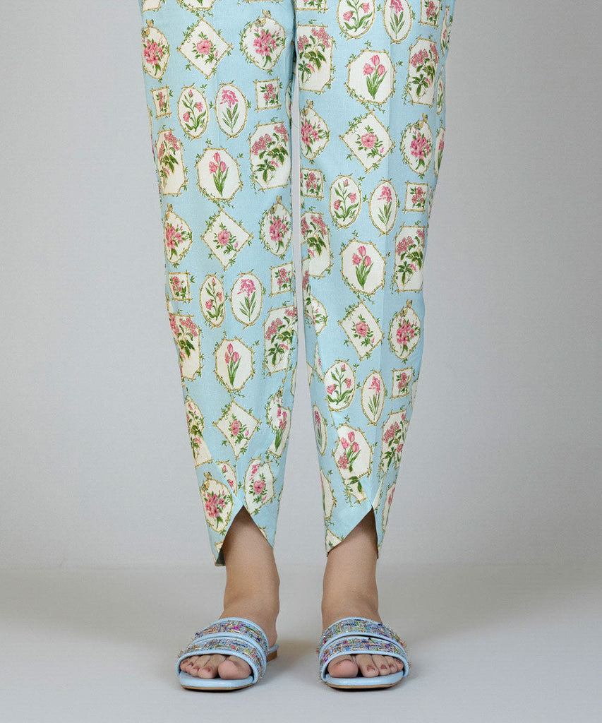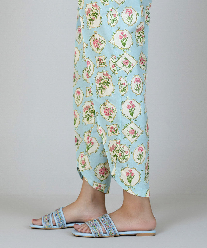 Complete your Eid look in our sky blue printed poplin tulip shalwar.