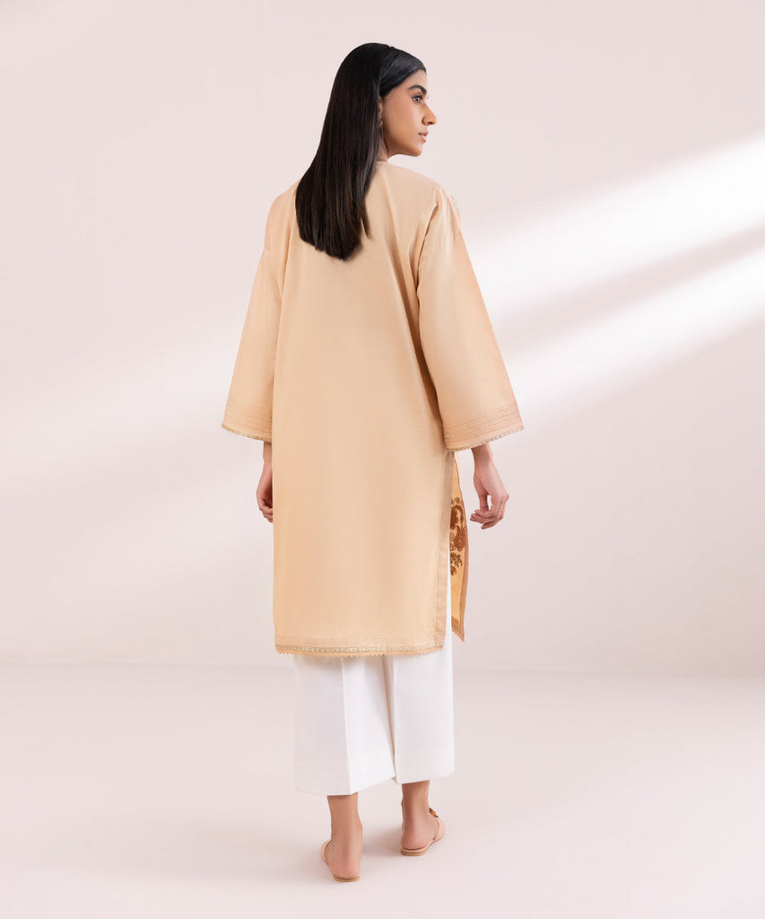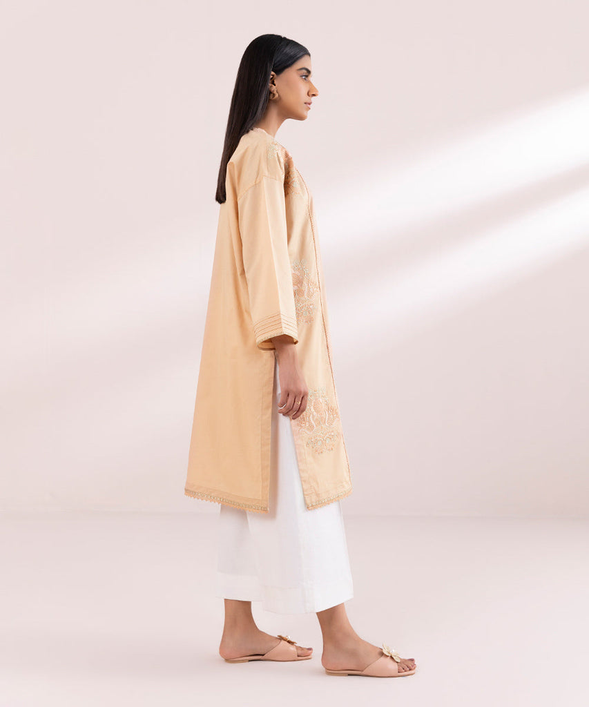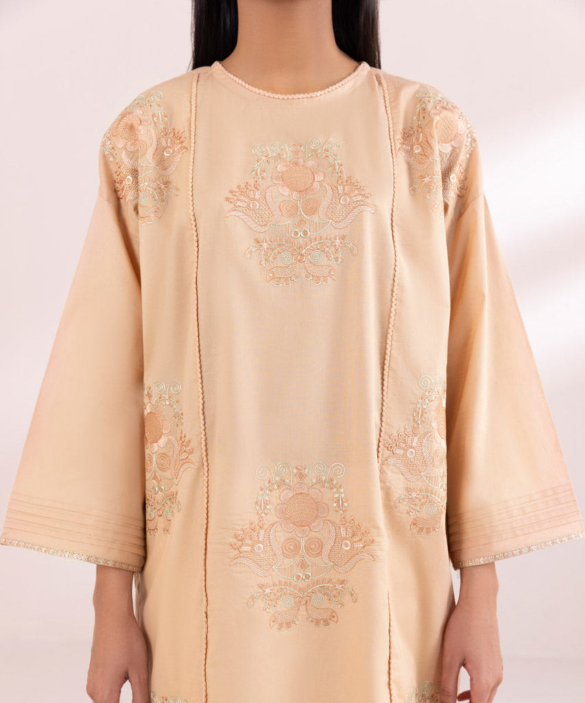 Boxy ShirtCurate an elevated look with our embroidered tea pink, long boxy shirt in textured lawn.