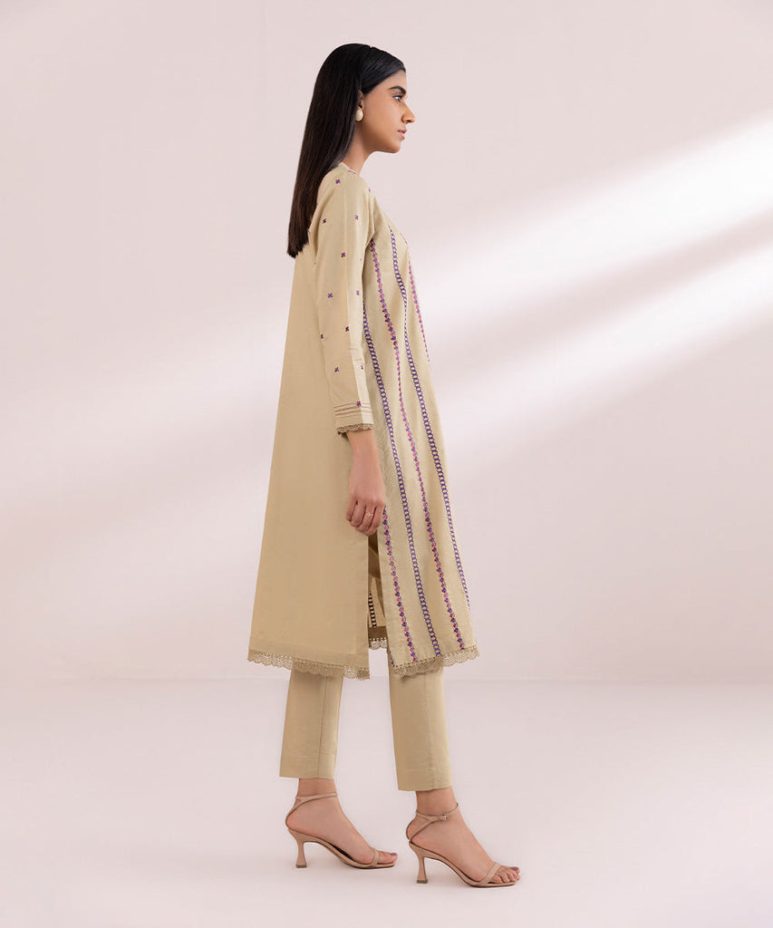 A-Line ShirtBreeze through the day with our embroidered camel brown, long A-line shirt in textured lawn accented with...