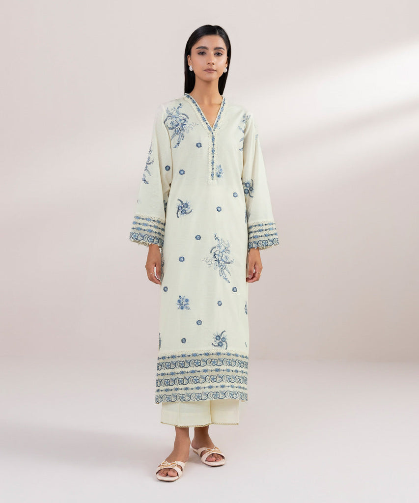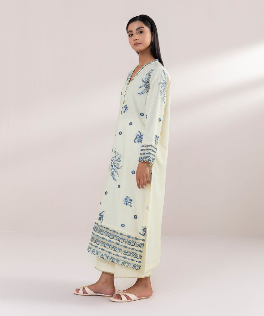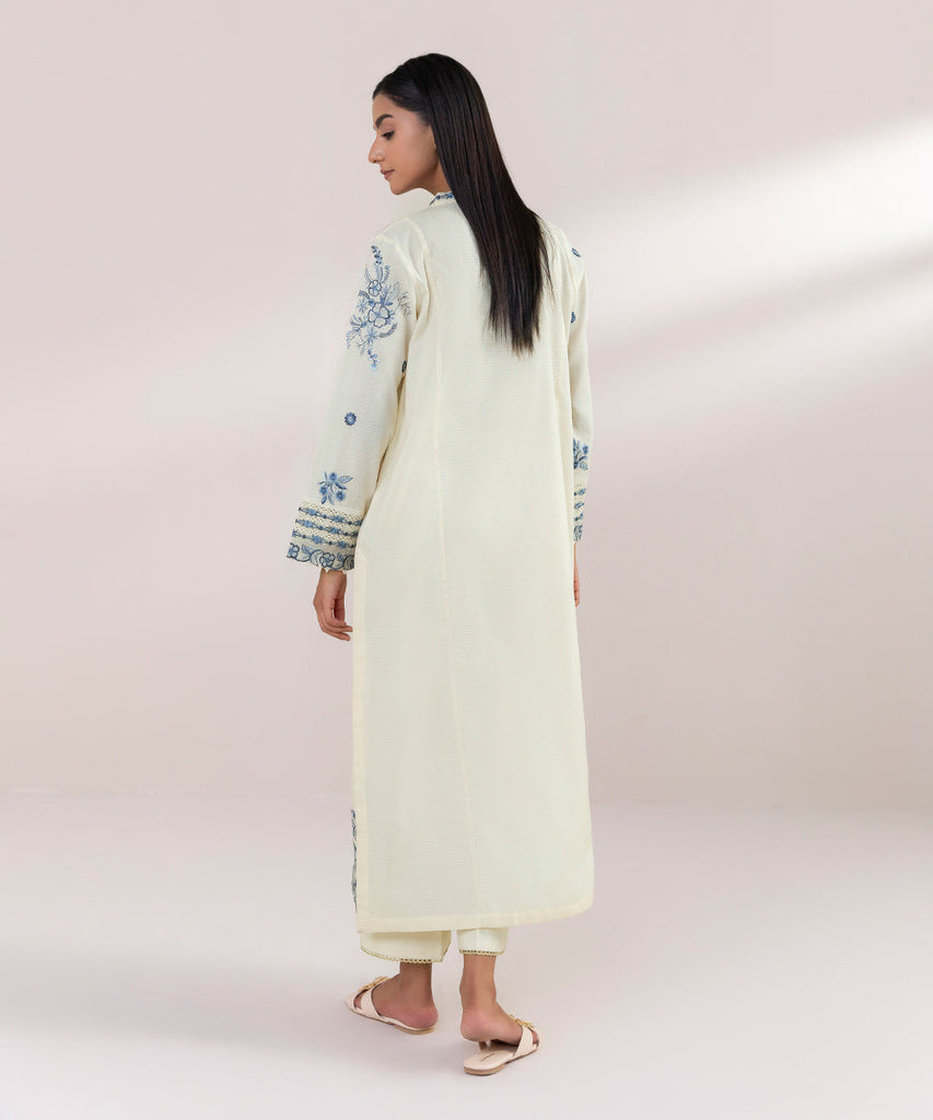 A-Line ShirtCurate the perfect festive fit this Eid with our off-white embroidered A-line shirt featuring a Y-necklin...