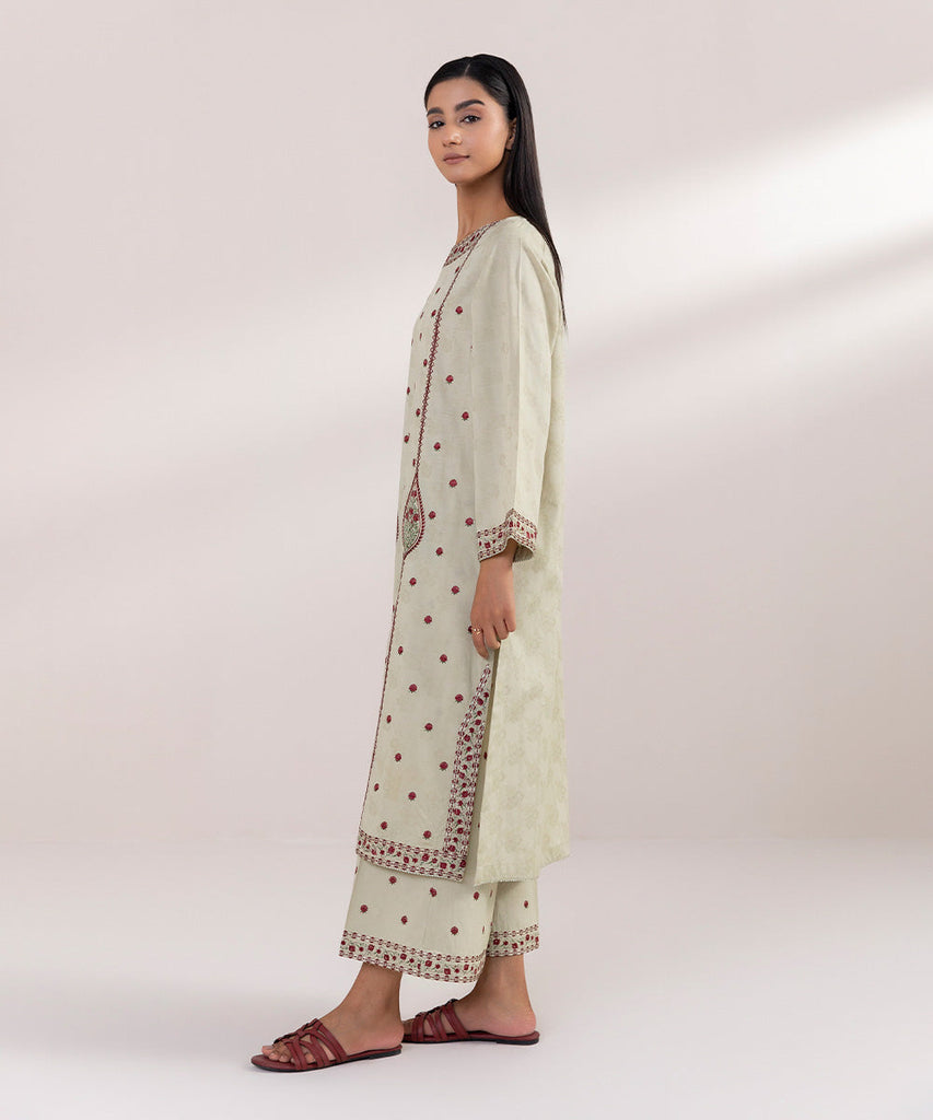 Dyed Front with Embroidery, Dyed Back, Full Sleeves, Boat Neckline
