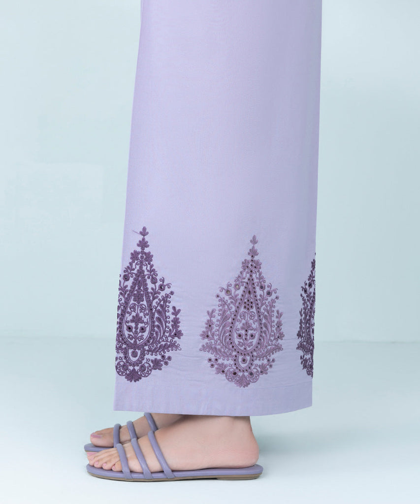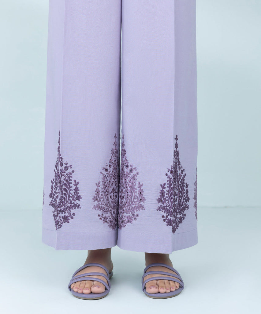 Elevate your Eid outfit in our lavender, cambric flared pants accentuated with embroidery.