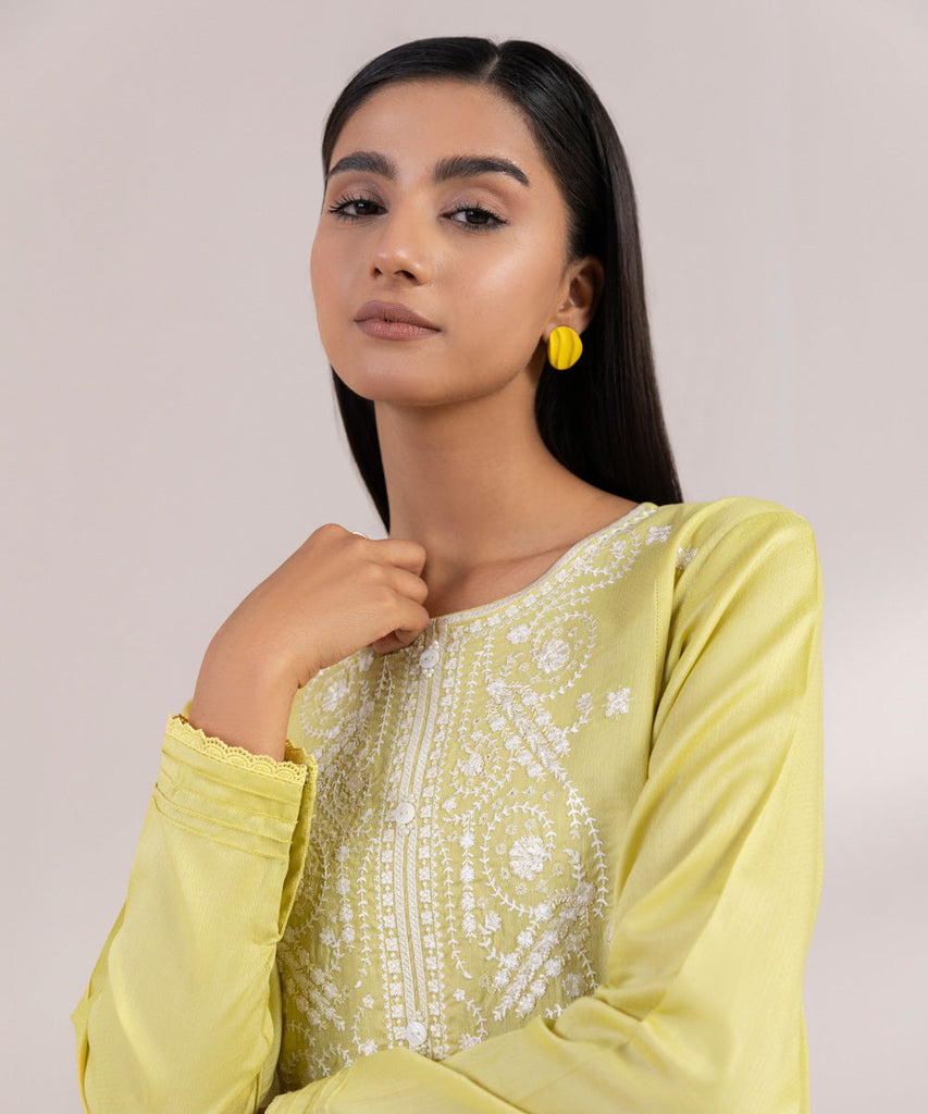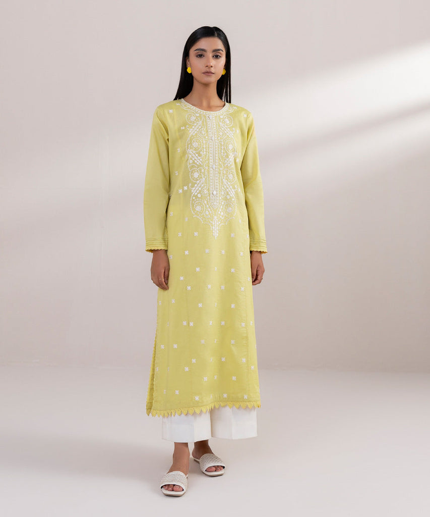 A-Line ShirtElevate your festive style with our yellow embroidered A-line shirt featuring a round neckline. Details: ...