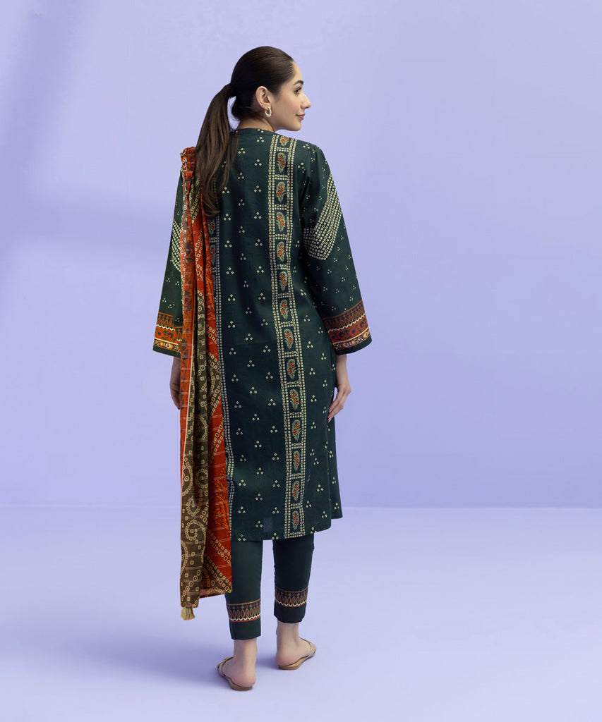 3-Piece Straight Kurta with Trouser & Dupatta Look regal with this green straight silhouette paired with a printe...