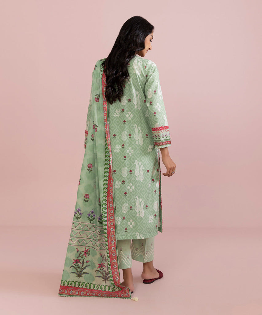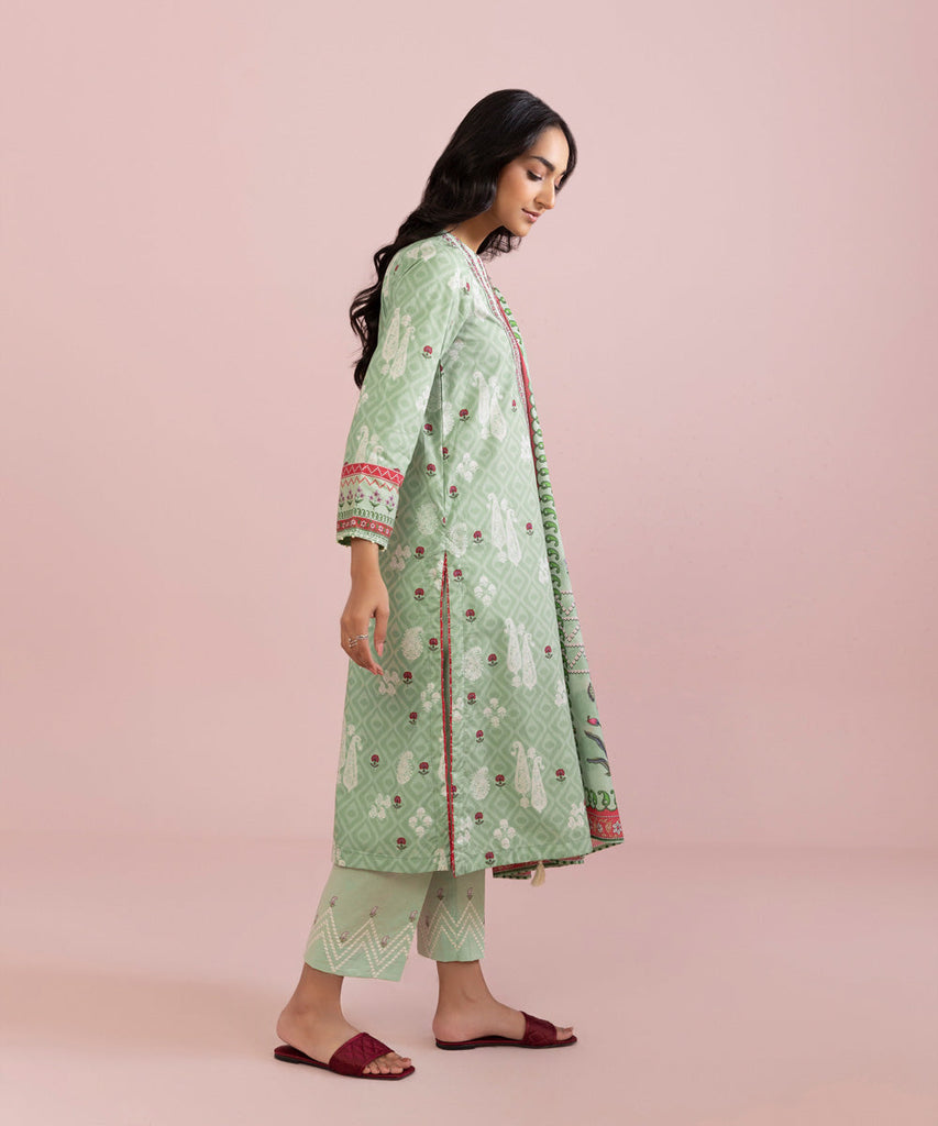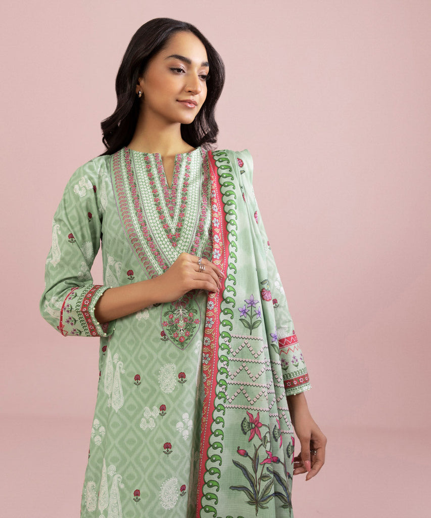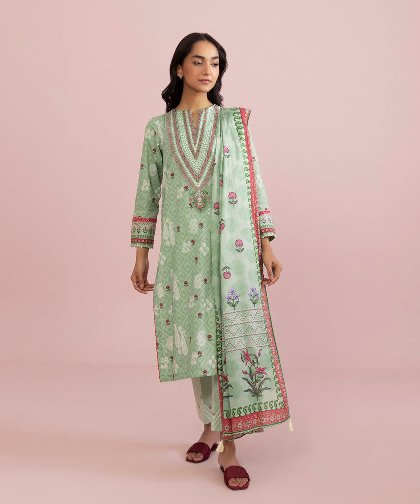 3-Piece A line Shirt with Trouser & Dupatta Immerse yourself in soft hues of green this season with this A-line s...