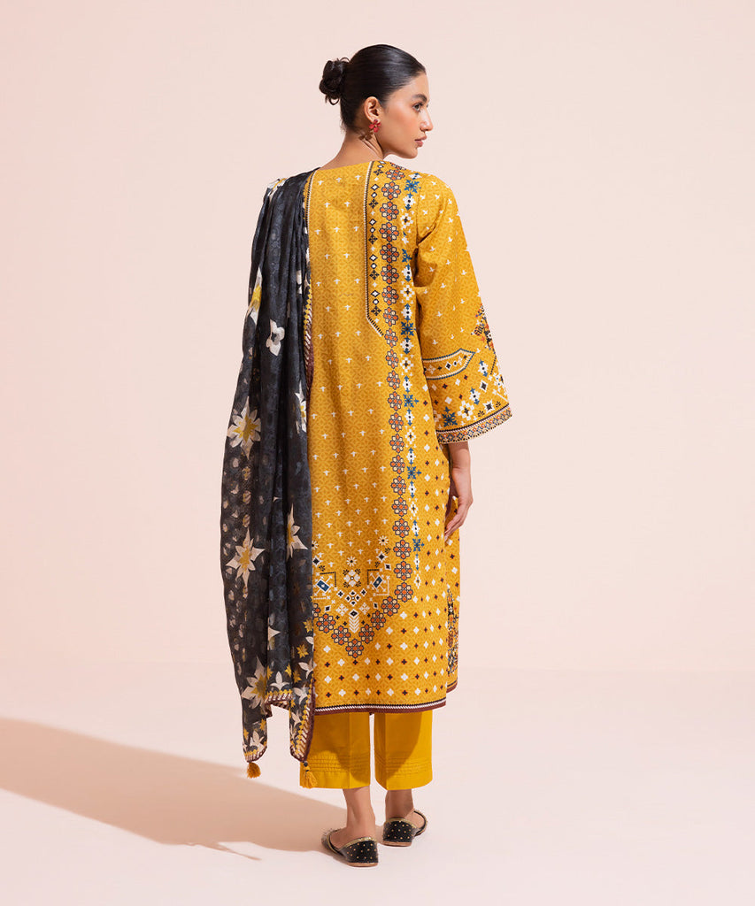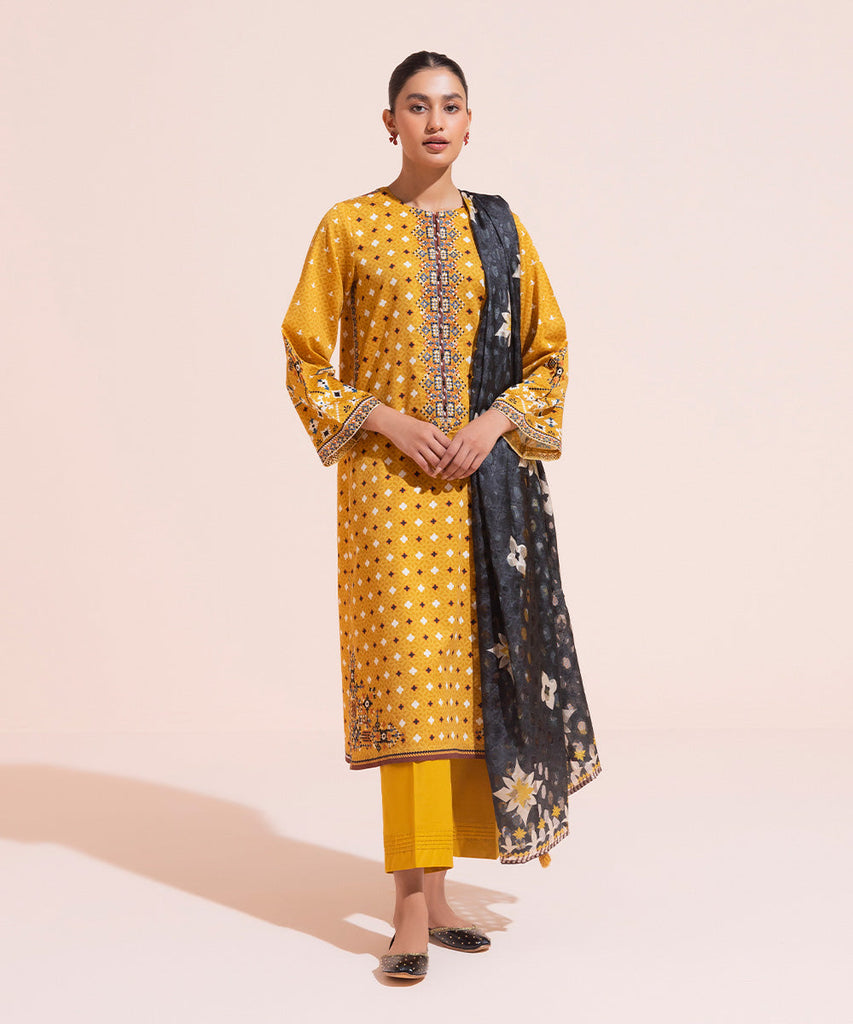 This exquisite cotton satin ensemble takes inspiration from the rich heritage of Morocco, showcasing a delightful fusion of intricate embroidered patterns, motifs and a tapestry of colours that captures the essence of Moroccan heritage. This Eid, make an elegant statement with our ditsy patterned straight shirt embossed on a sunny canvas paired with straight pants and a detailed jacquard dupatta for an ethereal fashion statement.