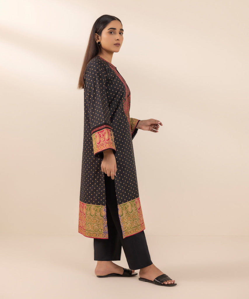 Printed Front with Embroidery, Printed Back with Embroidery, Full Sleeves, Round Neckline with a slit