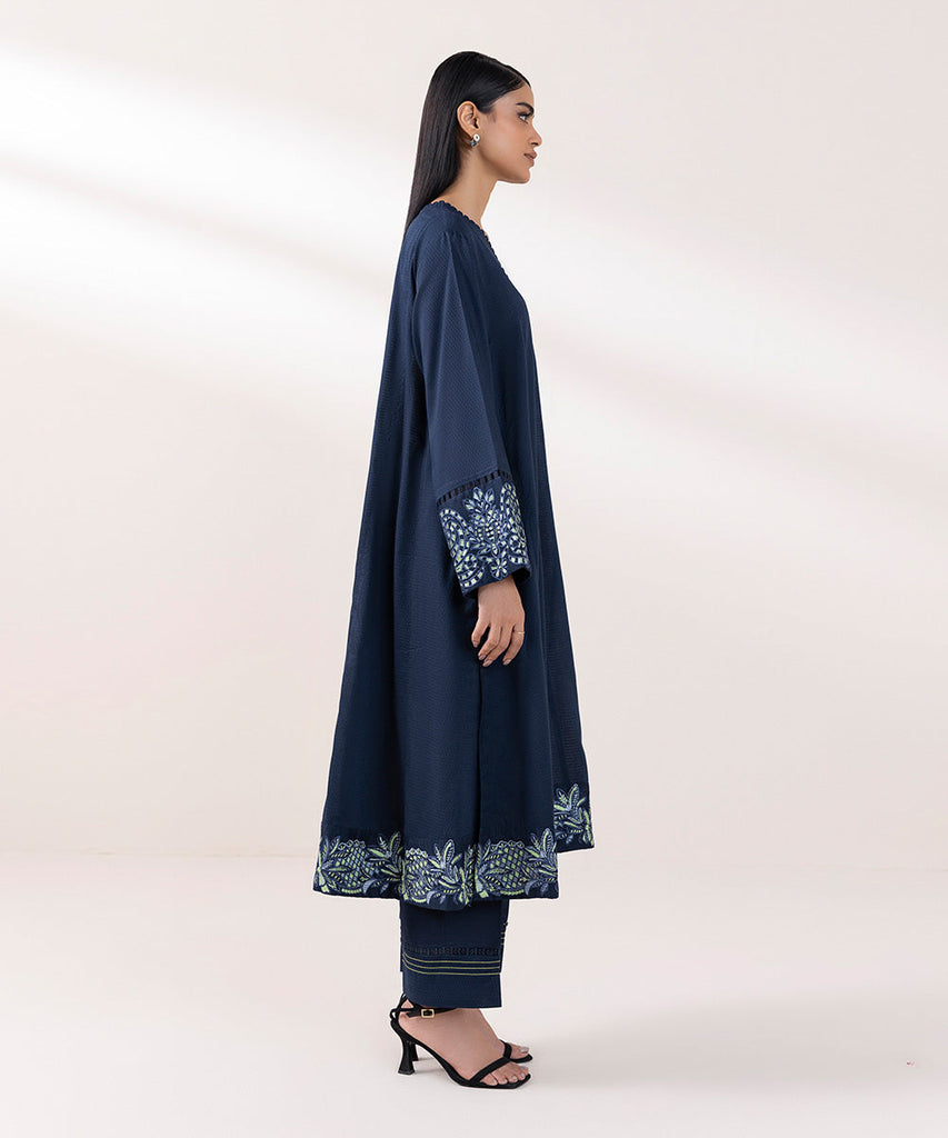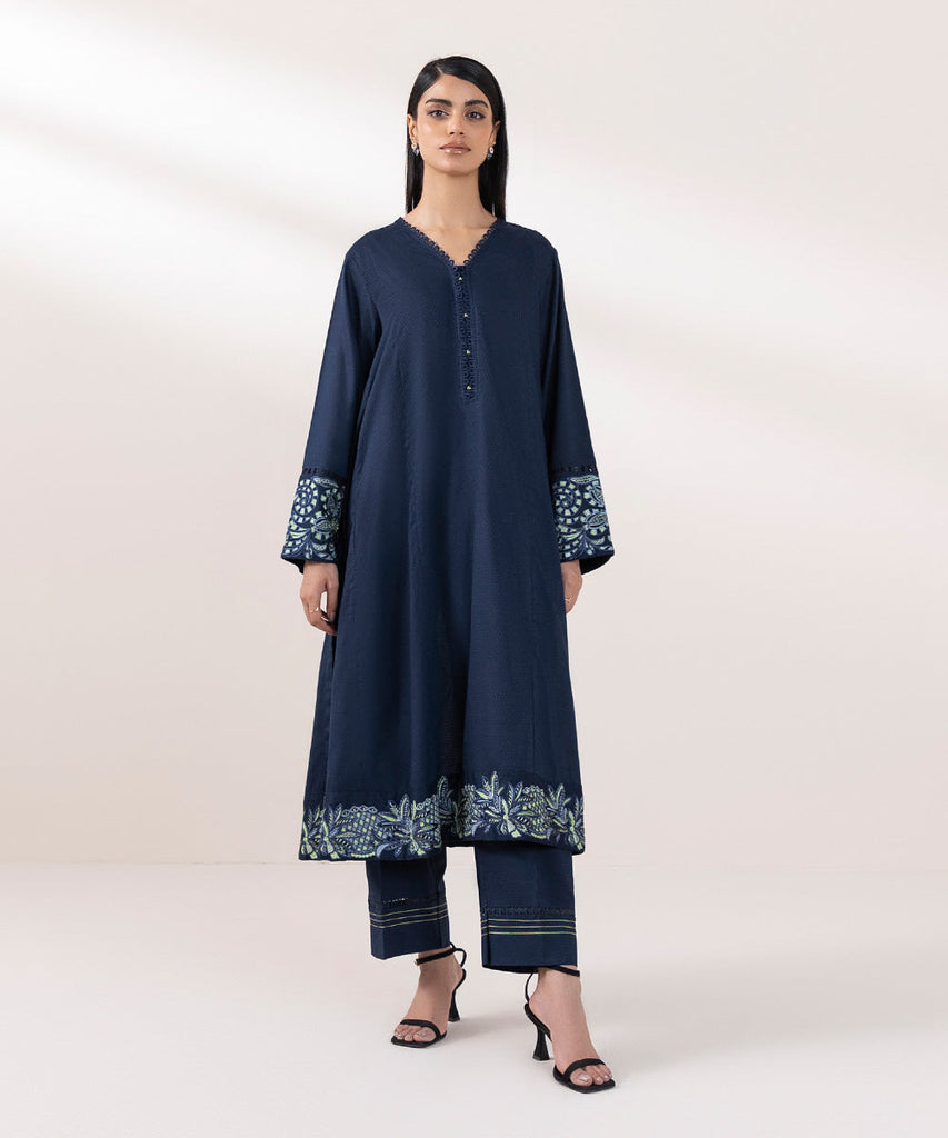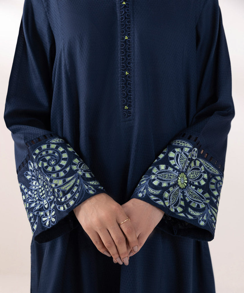 A-Line Flared ShirtFor a chic festive look style our navy blue, flared A-line dobby shirt decorated with embroidery. ...