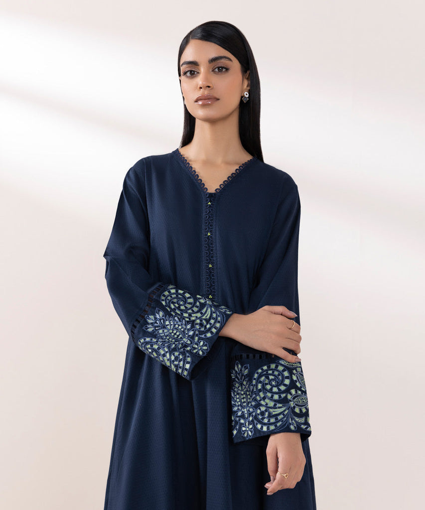 Dyed Front with Embroidery, Dyed Back with Embroidery, Full Sleeves, Y Neckline