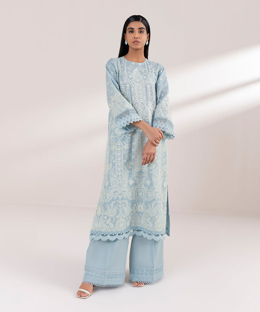 A-Line ShirtElevate your festive style with our pastel blue A-line embroidered shirt featuring a round neckline. Deta...