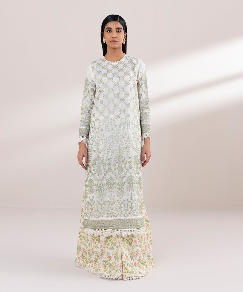Dyed Front with Embroidery & Lace, Dyed Back with Embroidery & Lace, Full Sleeves, Crew Neckline