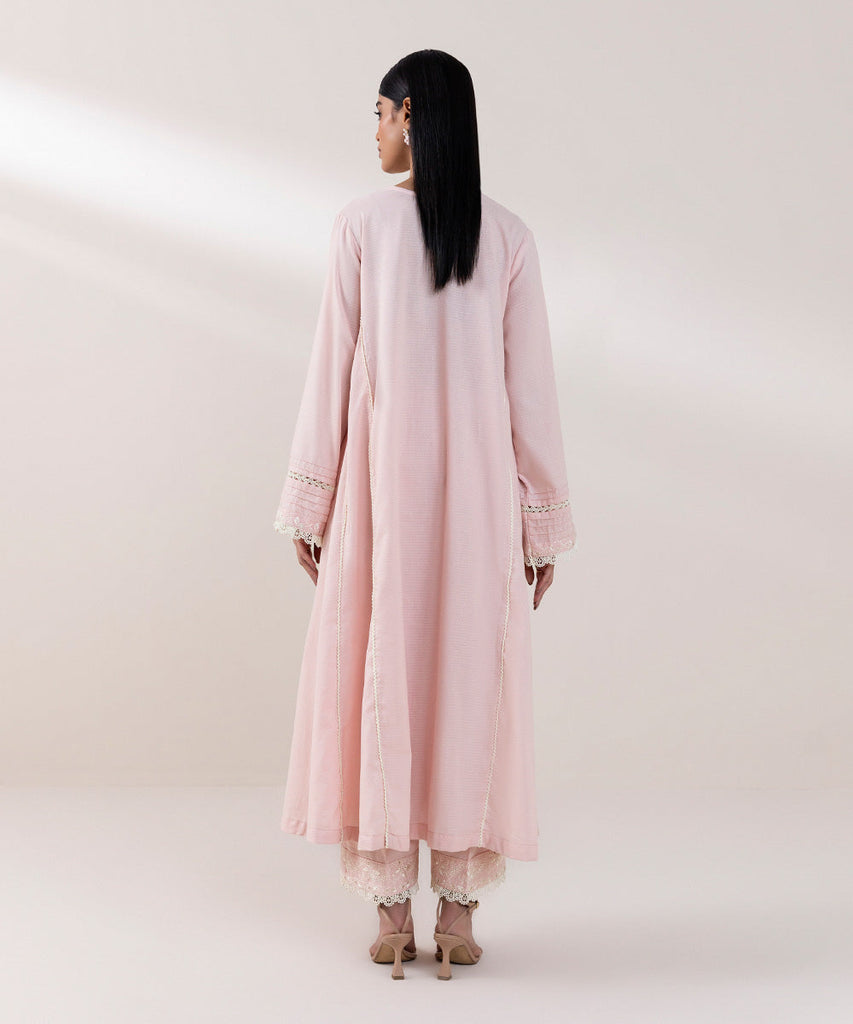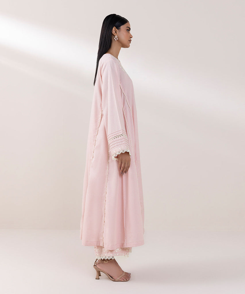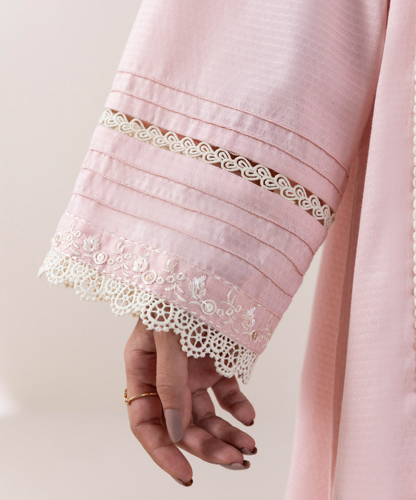 A-Line Flared ShirtFor a chic festive look style our pastel pink, flared A-line dobby shirt decorated with lace and e...