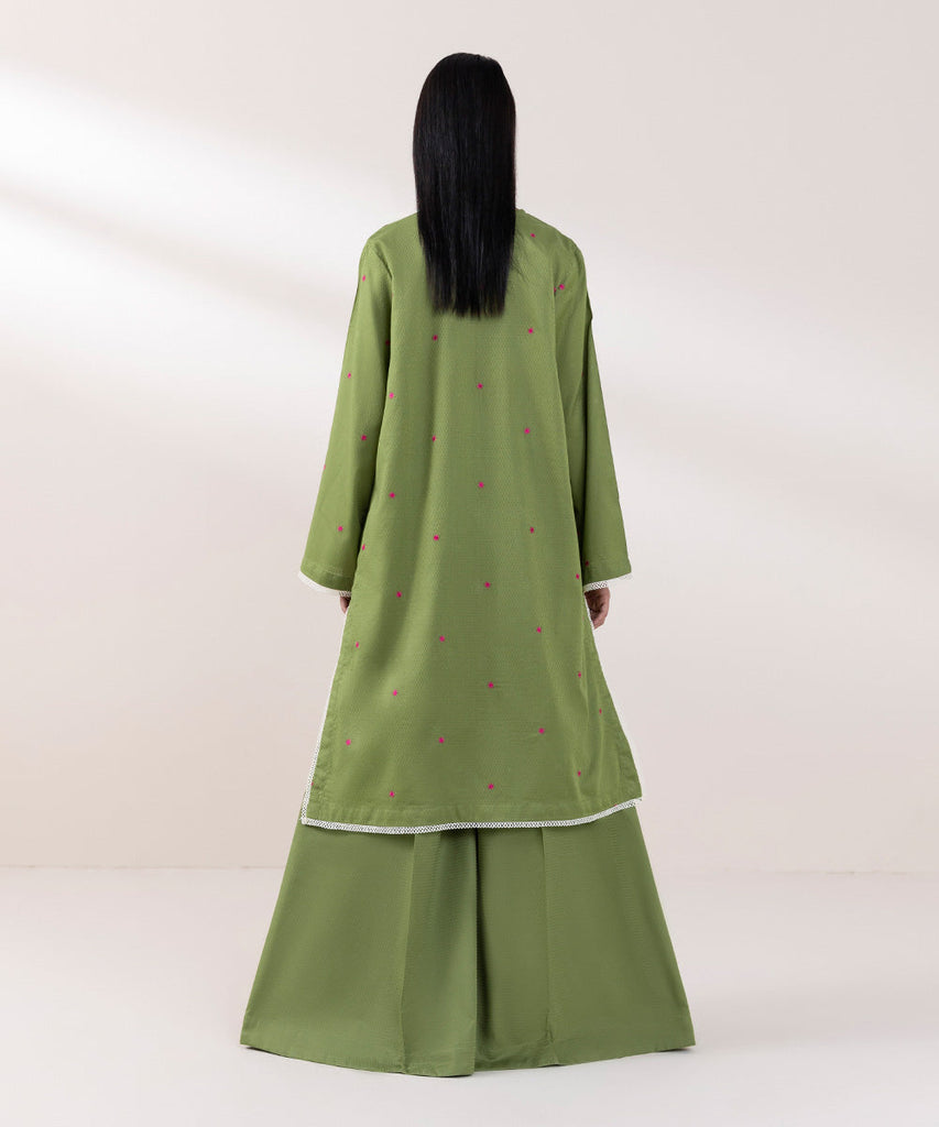 A-Line ShirtFor a chic festive look style our grass green, A-line dobby shirt decorated with embroidery.