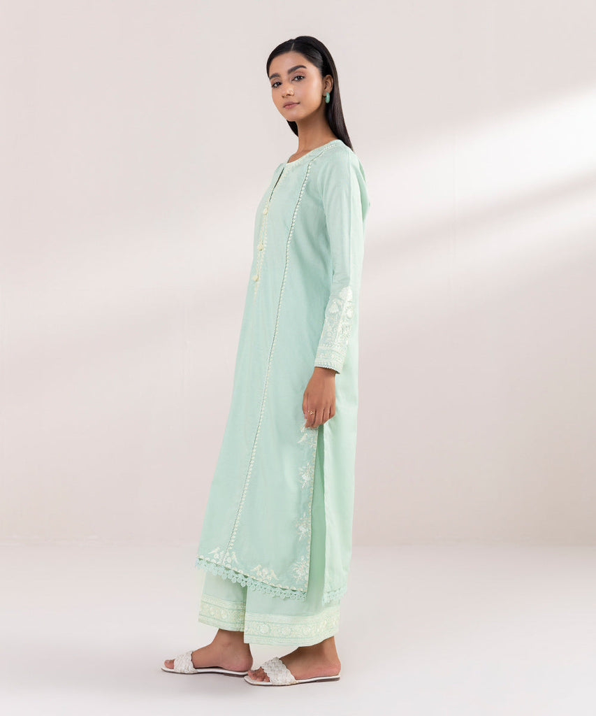 A-Line ShirtElevate your festive look with our A-line embroidered mint green shirt, featuring a round neckline with s...
