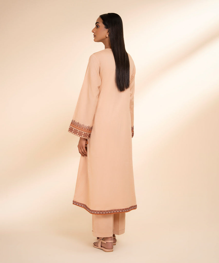 A-Line Flared ShirtOpt for traditional style this Eid with our sand beige, flared A-line, dobby shirt accentuated wit...