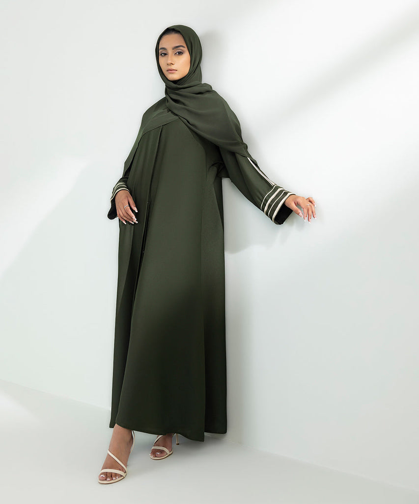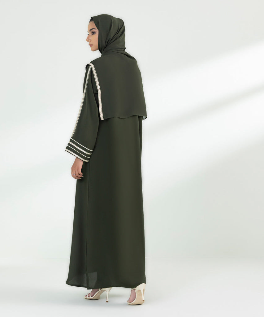 Embroidered Button Through Abaya Set