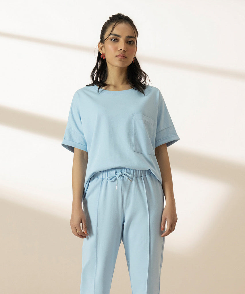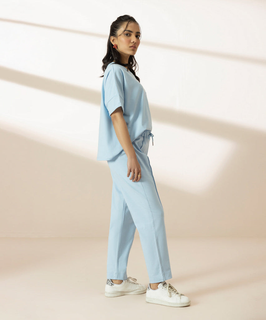 Slim-fit trousers with front pleat detail and side pockets. Elasticated waistband with drawcord.Details: Colour: Sky ...